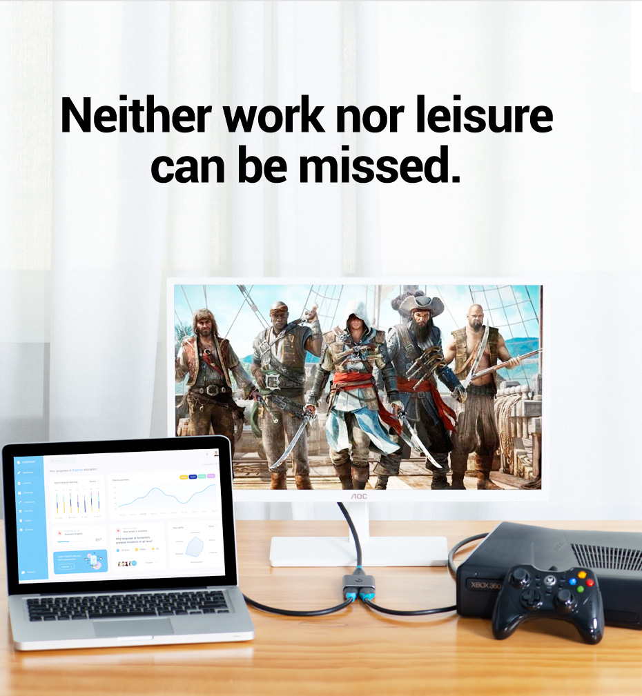 Hoạt động với tất cả các thiết bị có giao diện HDMI, chẳng hạn như PC, máy tính xách tay, Xbox 360, Xbox One, PS3, PS4, máy chiếu, HDTV, v.v.