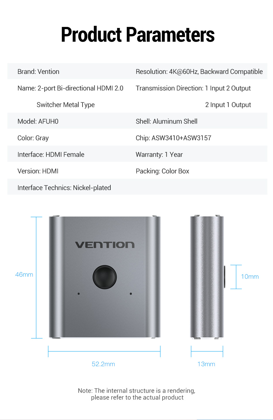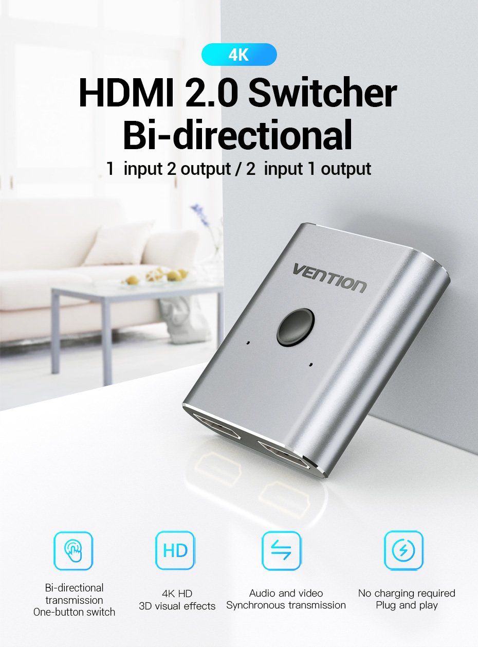Vention Bộ Chuyển Đổi HDMI 4K 60Hz HDMI 2.0 1 Trong 2 Ngoài / 2 Trong 1 Cho PS4 TV XBOX360 Và Phụ Kiện