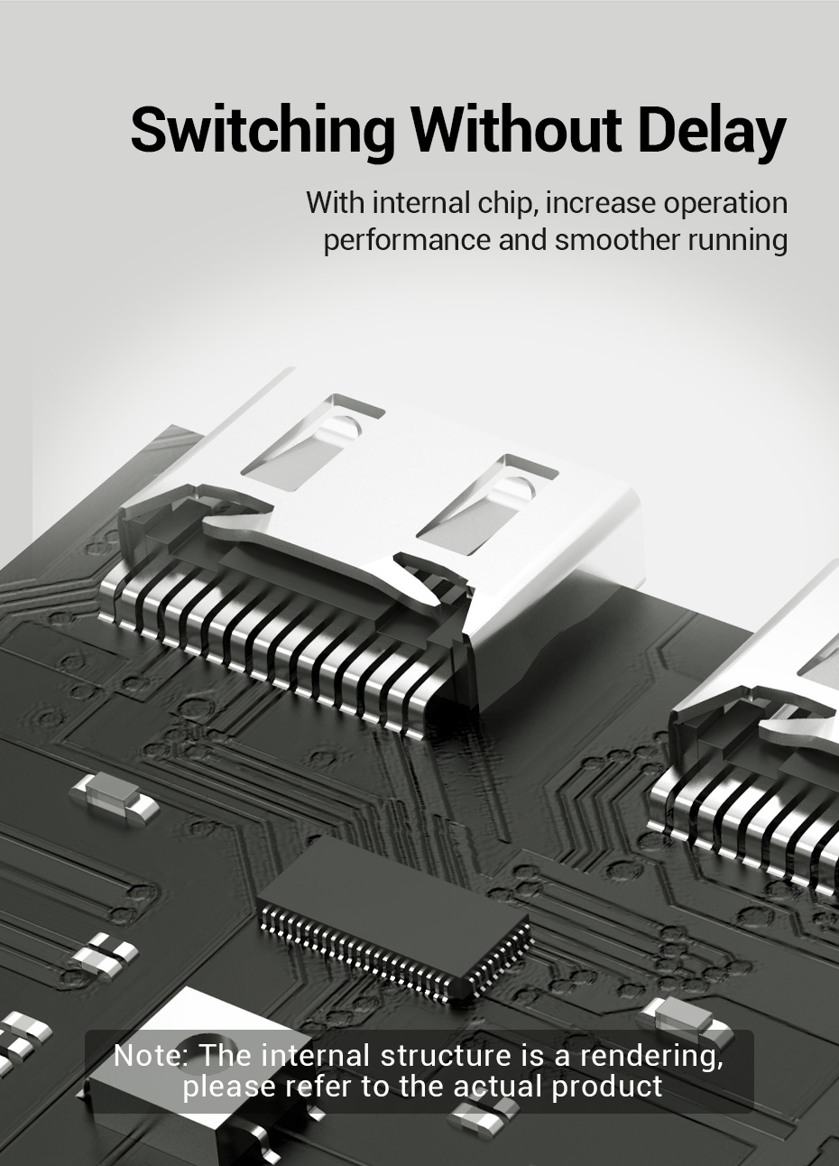 Công tắc HDMI hỗ trợ độ phân giải tối đa 4Kx2K @ 60Hz và đồng thời truyền tín hiệu âm thanh và video, tận hưởng hiệu ứng hình ảnh.
