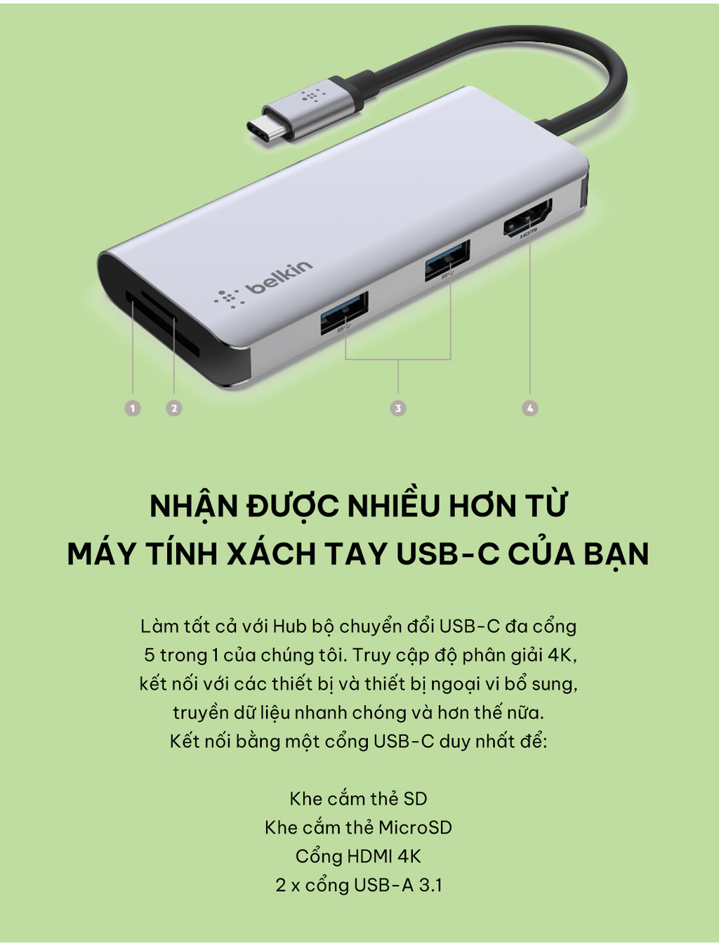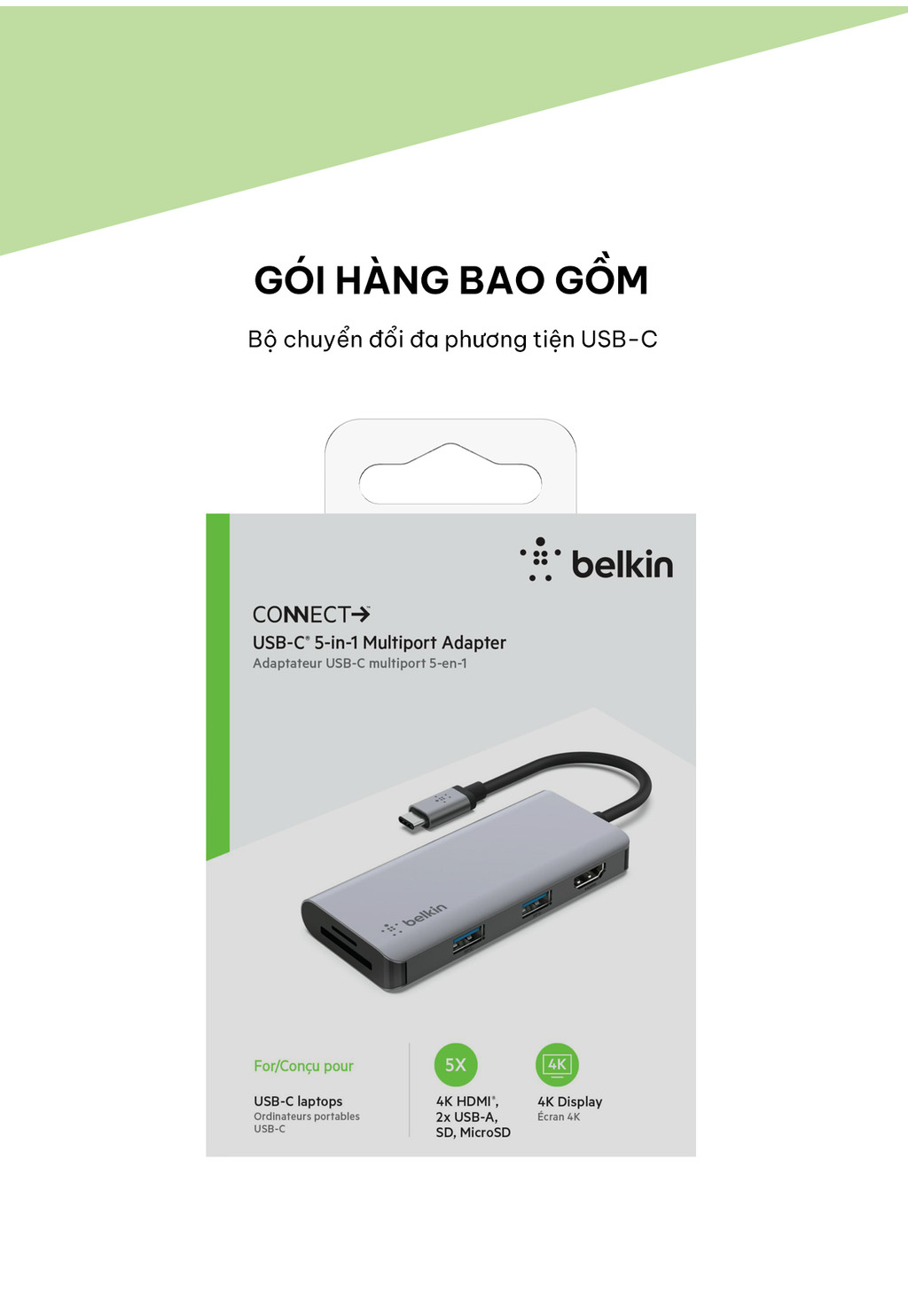 Hub chuyển đổi Belkin CONNECT Hub USB-C 5-in-1 – HDMI 1.4 (4K 30Hz)