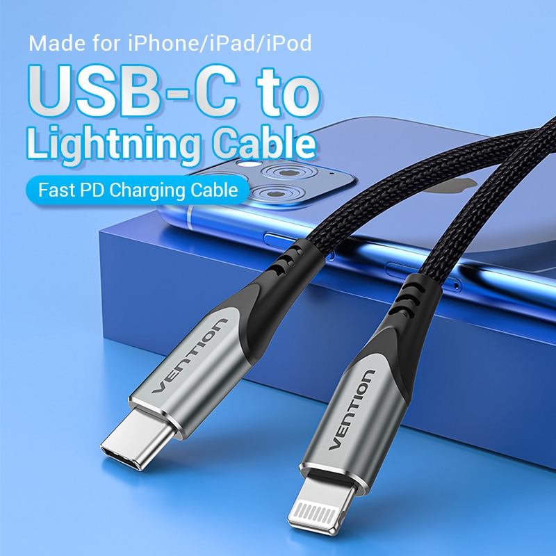 Lightning Cáp Vention PD20W USB C sang Lightning 3A PD hỗ trợ sạc truyền dữ liệu nhanh 480Mbps