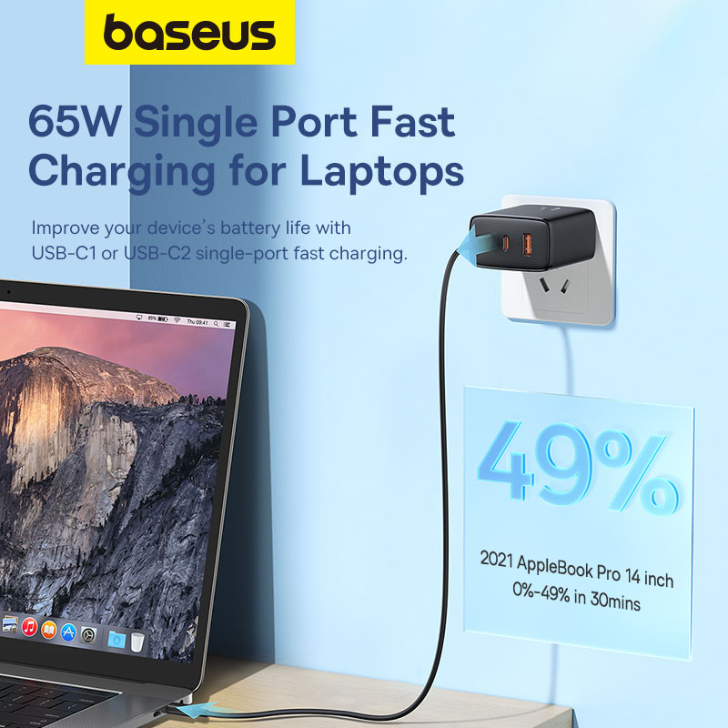 Củ sạc nhanh BASEUS USB C 65W thích hợp cho máy tính xách tay/ phone