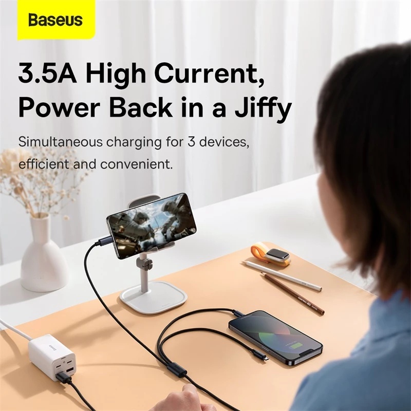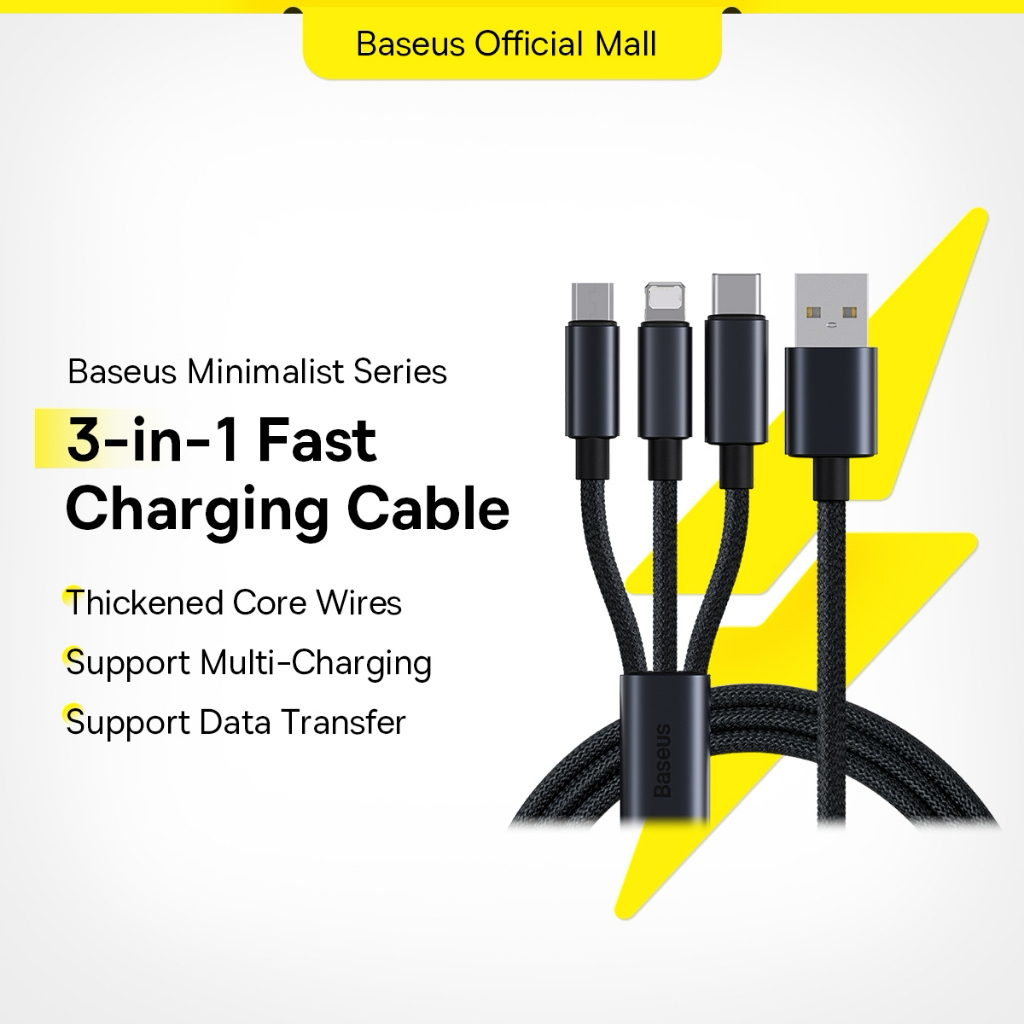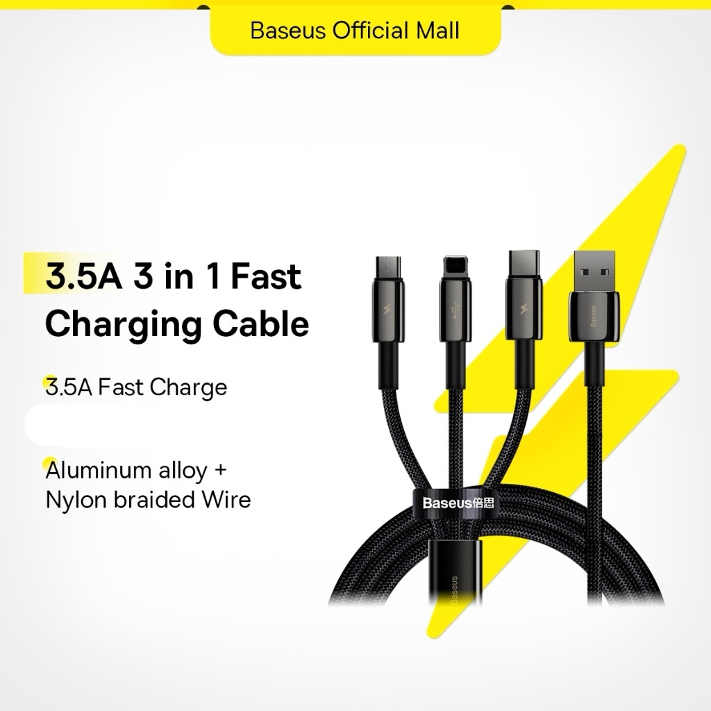Dây Cáp Baseus 3.5A 3 Trong 1 Đầu USB Sang M + L + C 1.5m