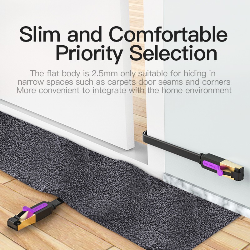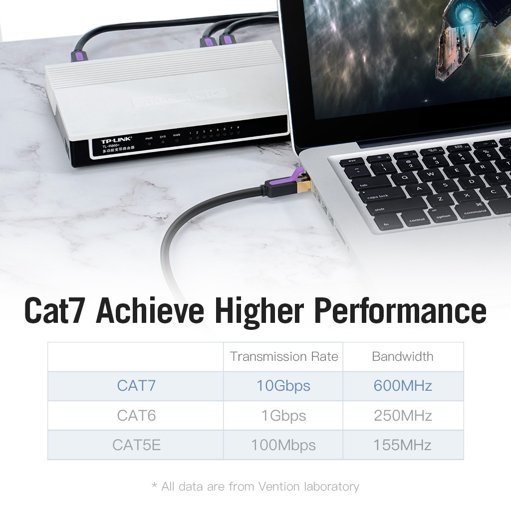 Dây cáp mạng Vention Cat7 10Gbps Truyền Dữ Liệu Tốc Độ Cao Lan Cat 7 Dẹt cáp Cho PC / Laptop / TV Box