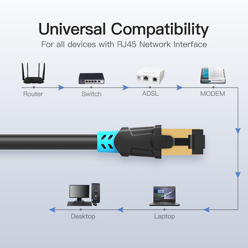 Dây Cáp Mạng LAN SFTP Vention RJ45 CAT8 Ethernet Tốc Độ Cao 40gbps 2000MHz Chất Lượng Cao Cho Bộ Định Tuyến