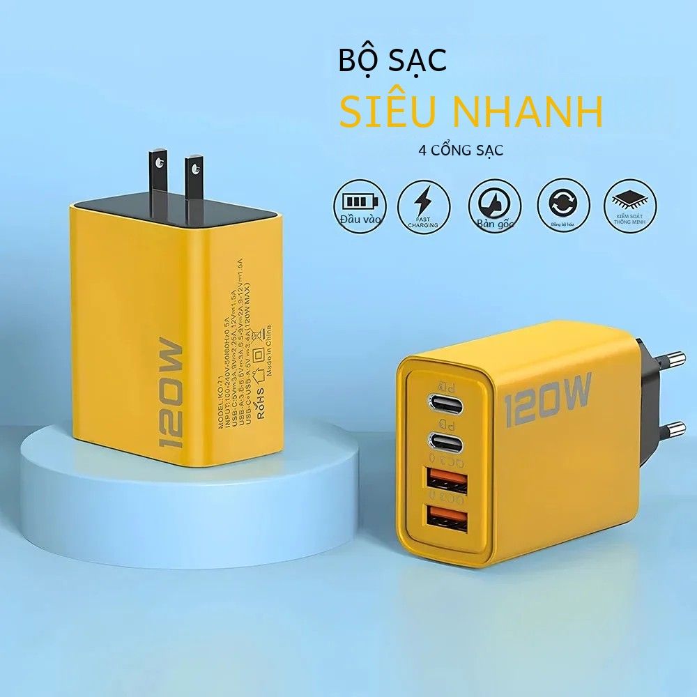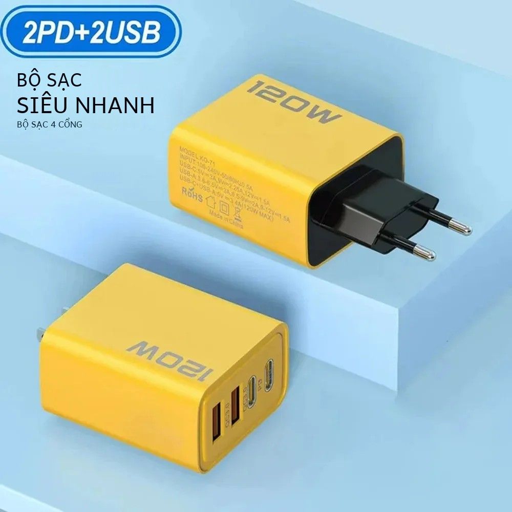 Trải nghiệm sạc nhanh với bộ sạc USB Type C này cung cấp công suất đầu ra tối đa 120W. Lý tưởng để tăng tốc nhanh chóng trên thiết bị của bạn. Thiết kế nhiều cổng