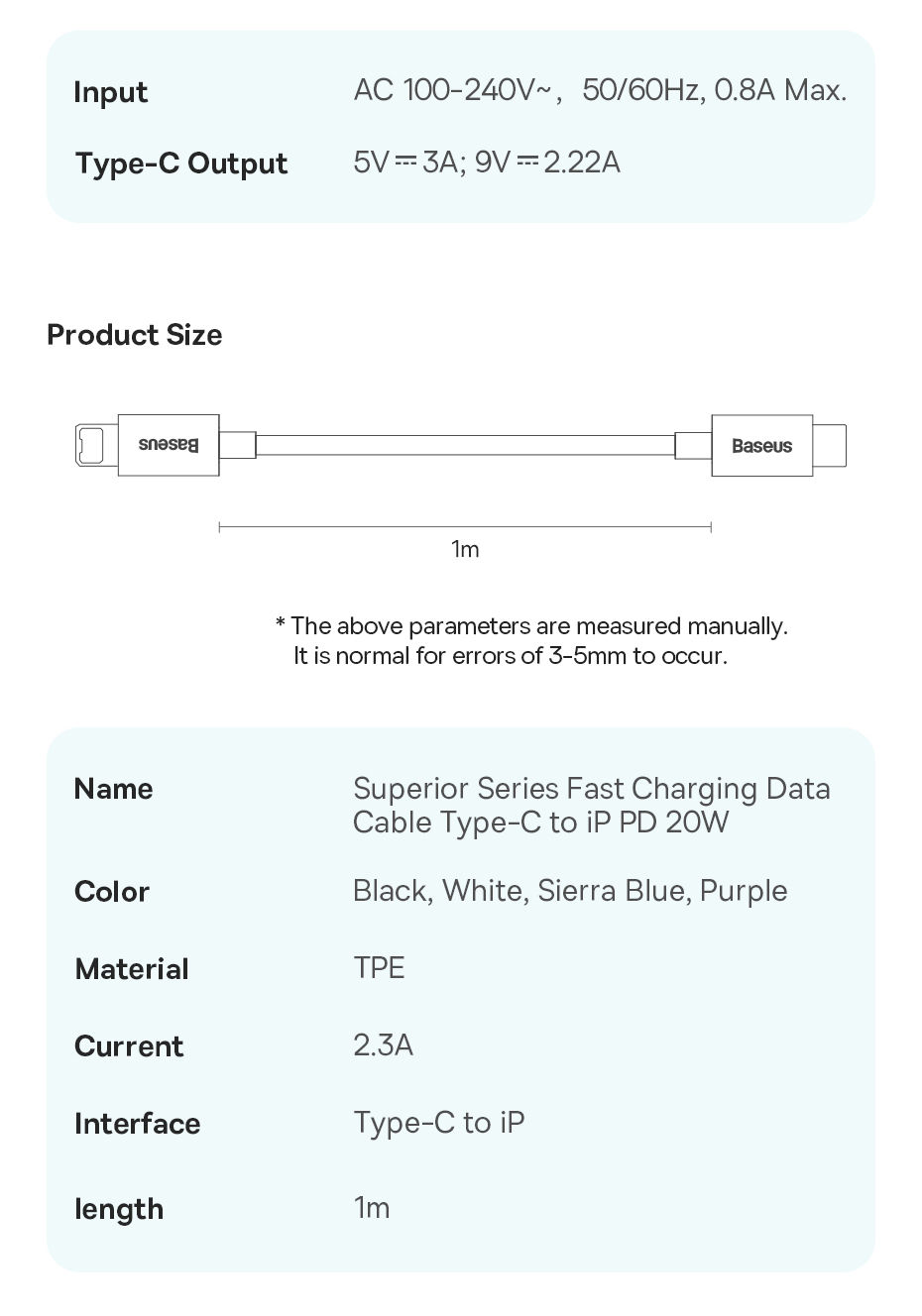 • Đầu ra Type-C: 5V = 3A; 9V = 2.22a