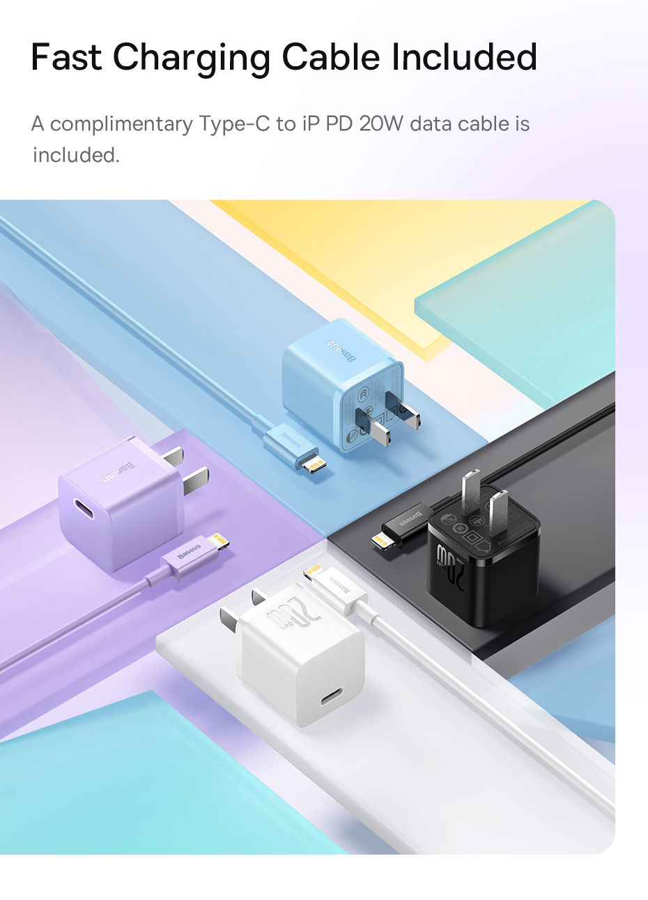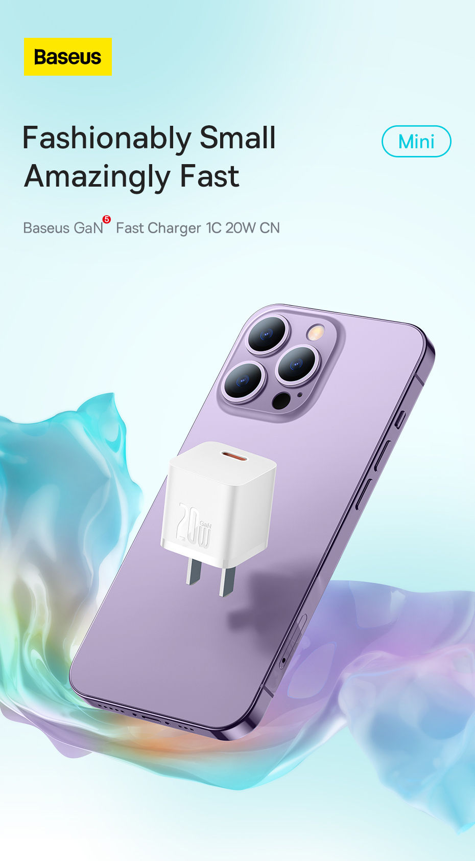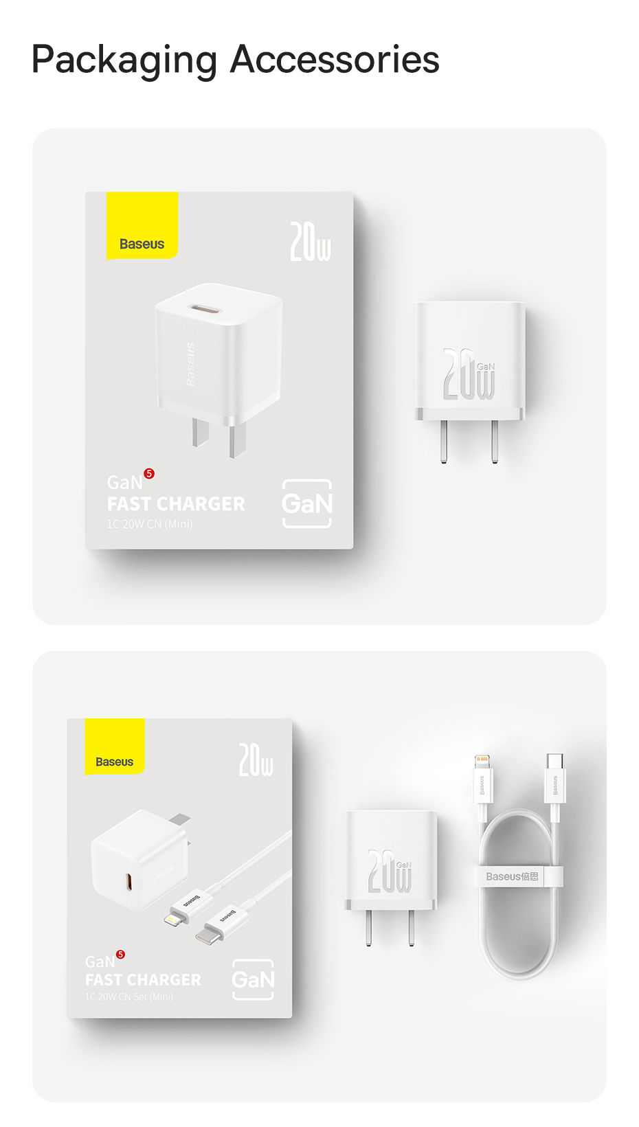 Baseus Bộ sạc nhanh gan5 Bộ sạc USB Type C 1C 20W hỗ trợ cáp dữ liệu sạc nhanh PD Type C cho Iphone 14 13 Pro Max Huawei Xiaomi