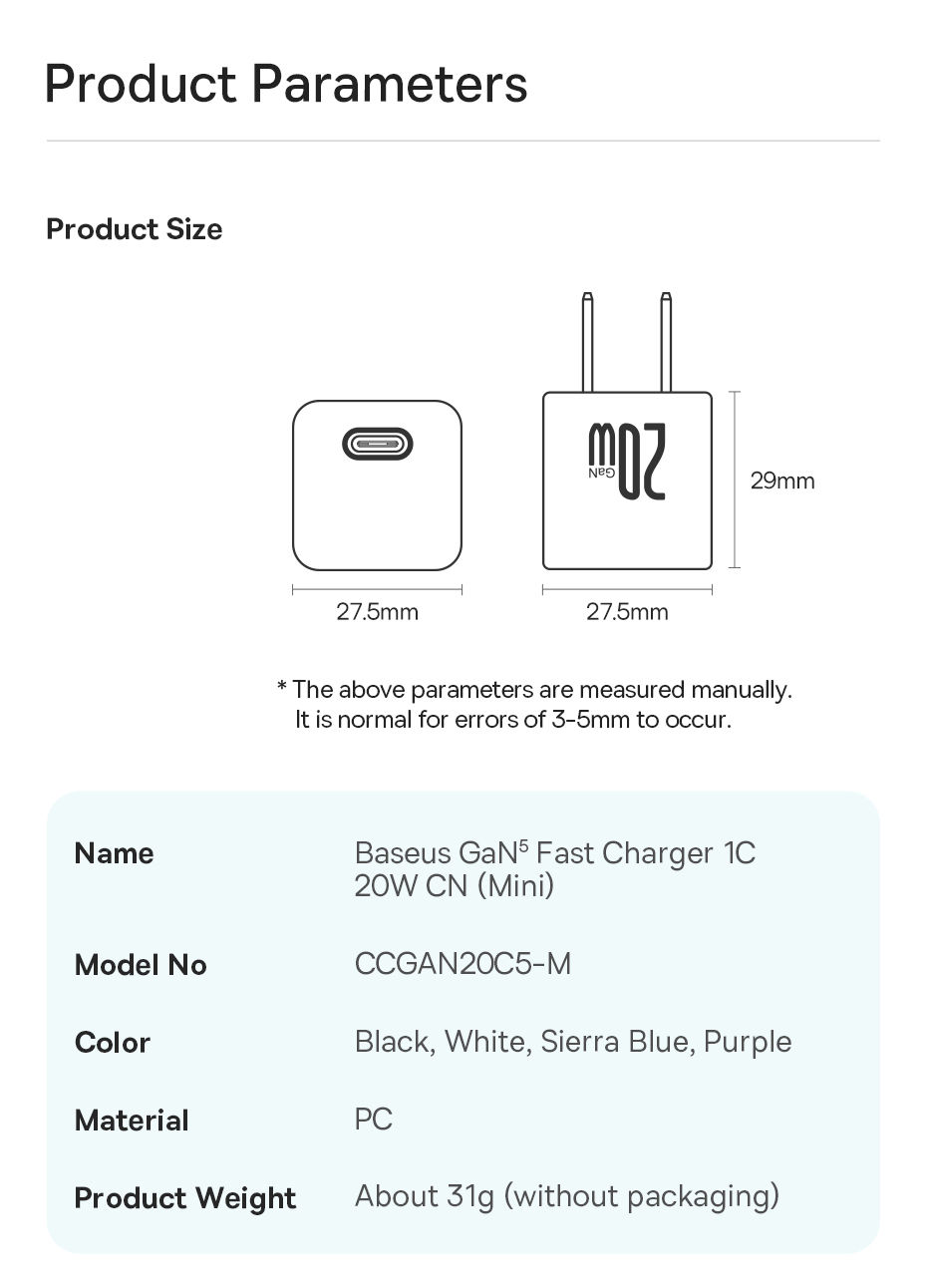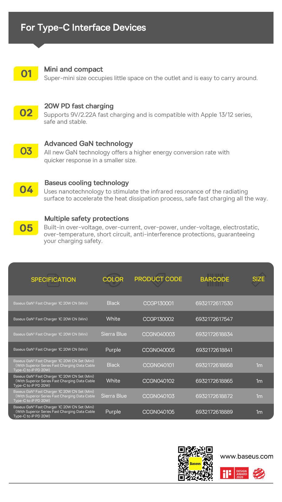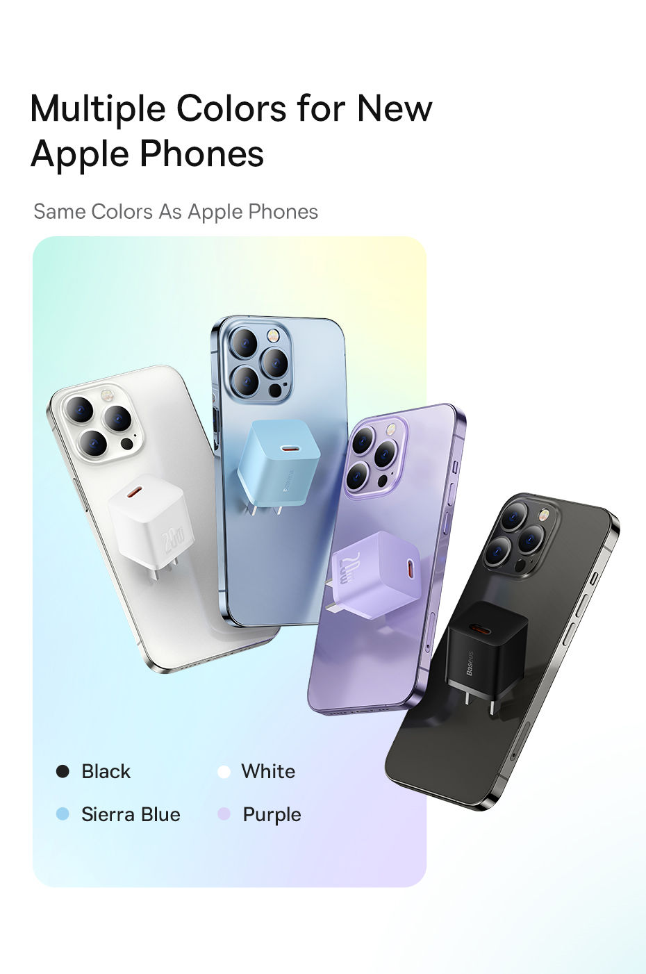 Baseus Bộ sạc nhanh gan5 Bộ sạc USB Type C 1C 20W hỗ trợ cáp dữ liệu sạc nhanh PD Type C cho Iphone 14 13 Pro Max Huawei Xiaomi