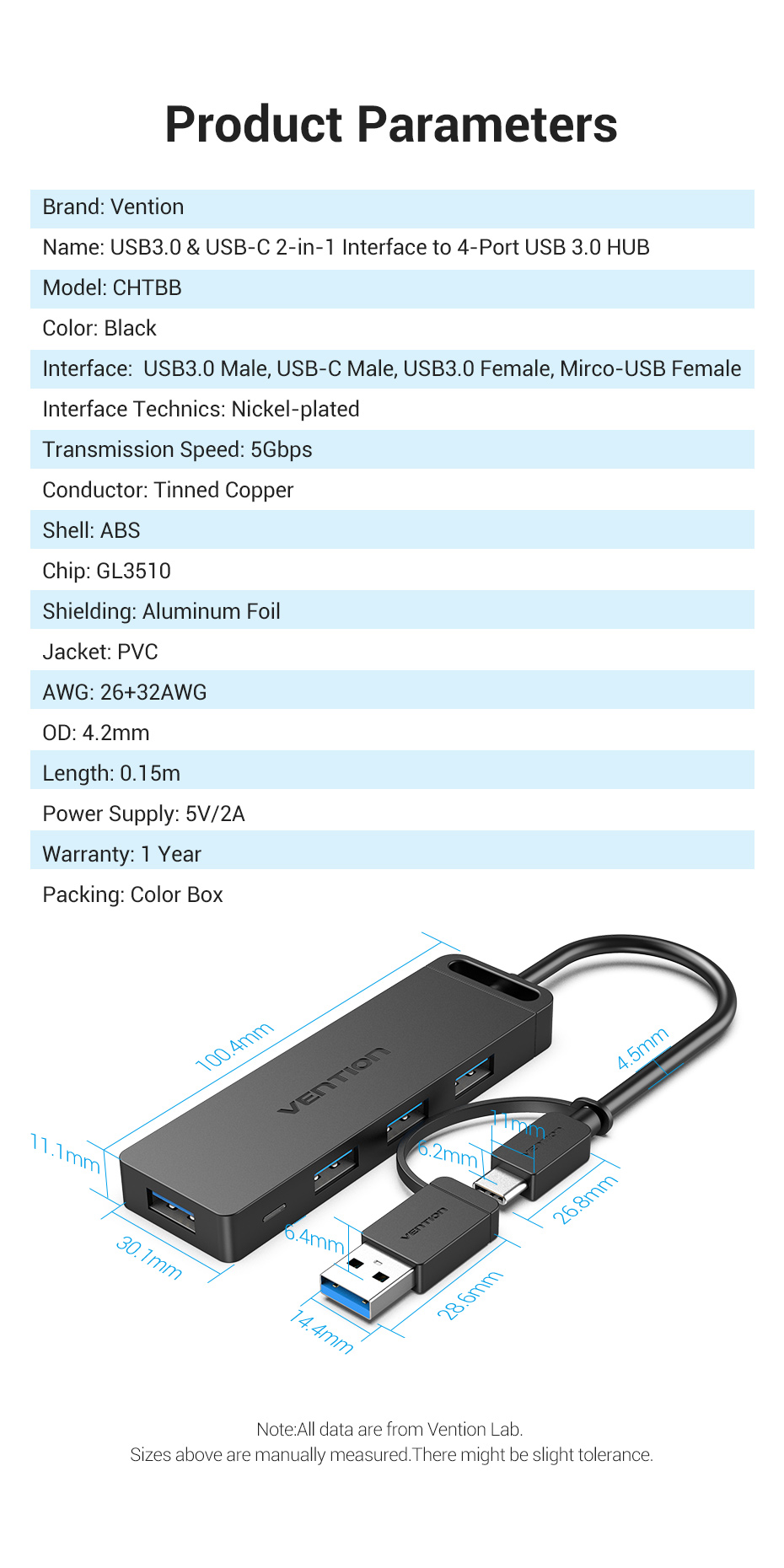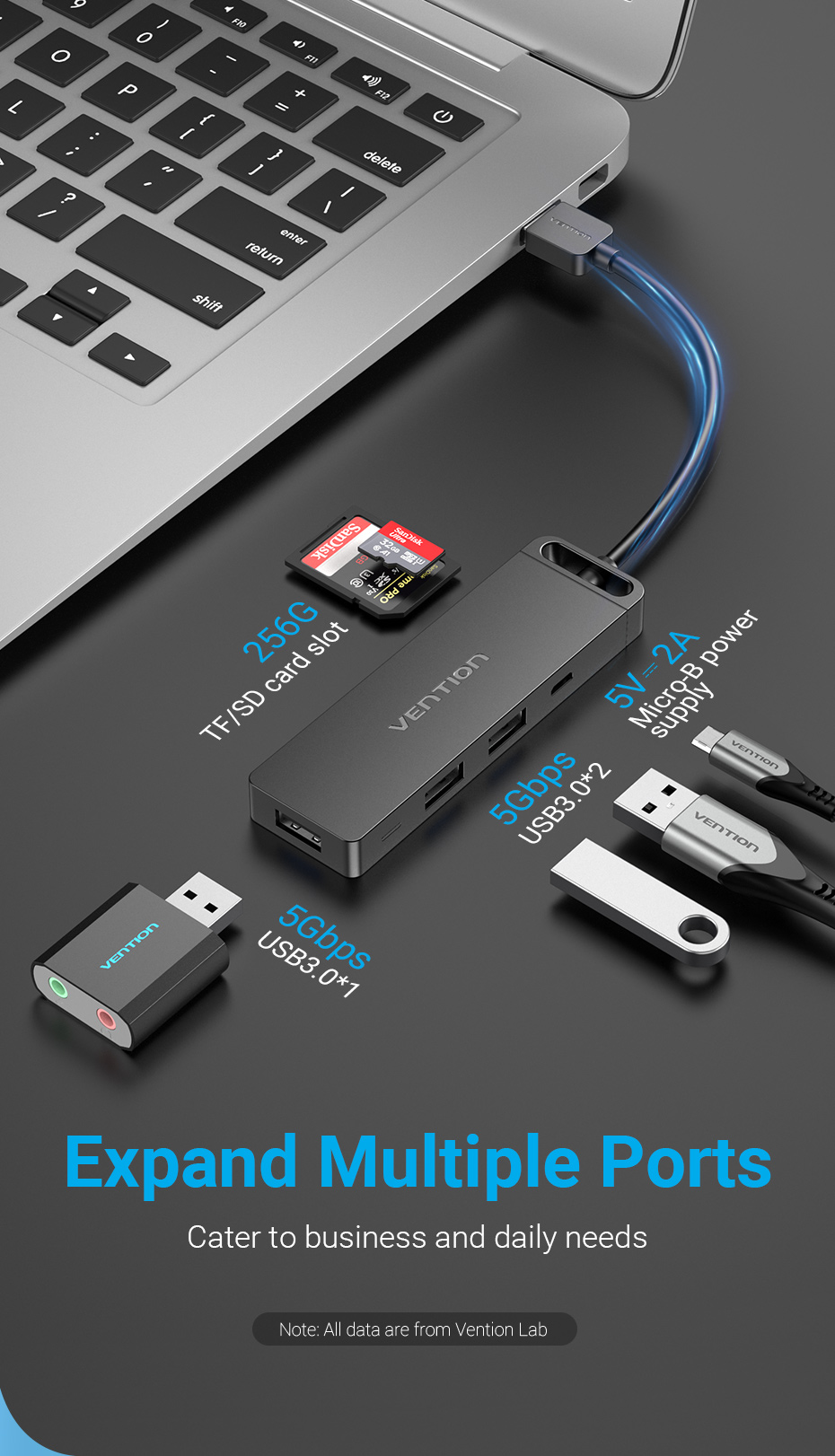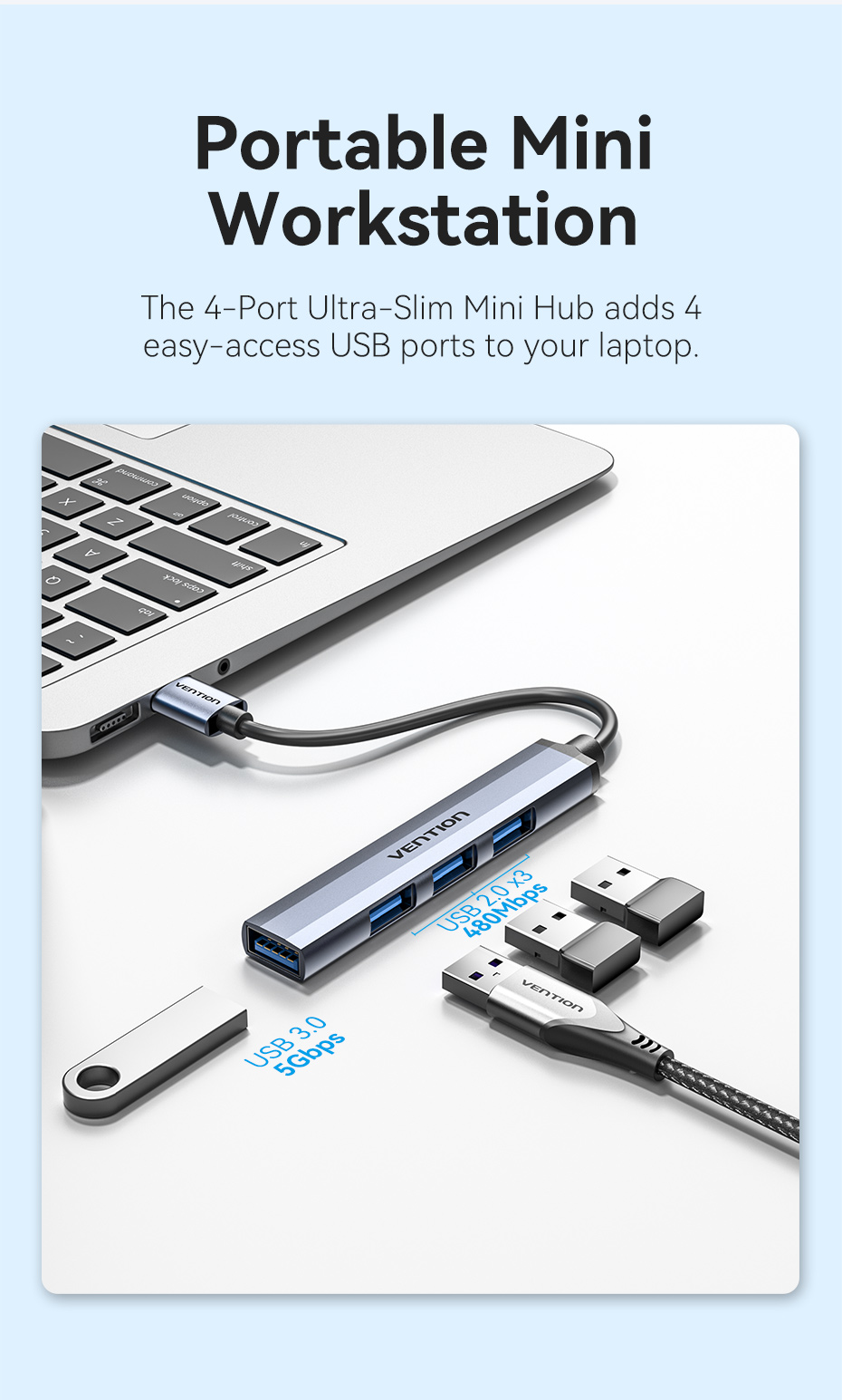 Bộ Chia USB Vention USB 3,0 Hub 4 Cổng Tốc Độ Cao 5Gbps Bộ Chia USB Di Động HUB USB Máy In Máy In Tương Thích Với Laptop PS4