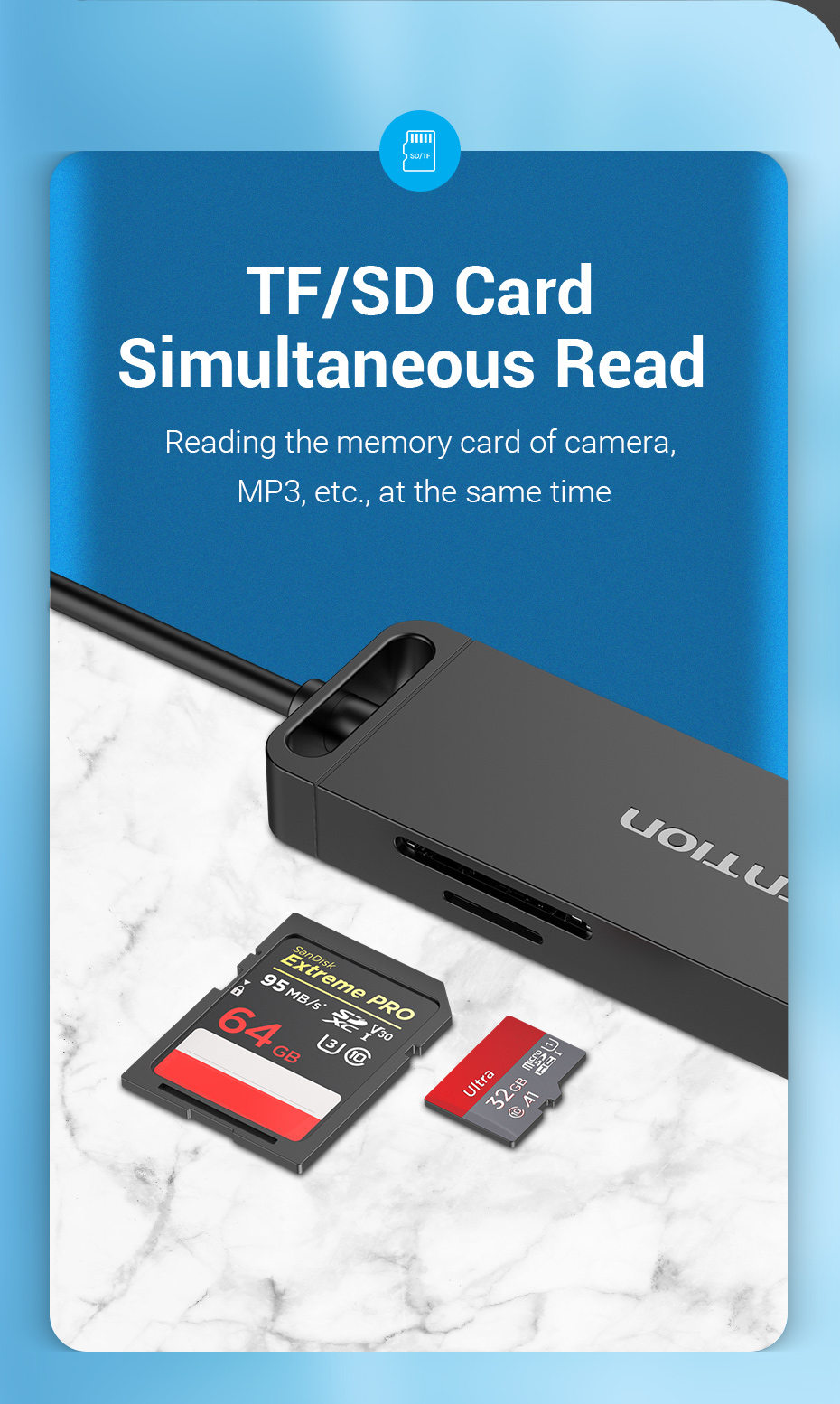Loại khe cắm thẻ: SD/TF 2-LUN (Đọc/ghi hai thẻ cùng lúc)