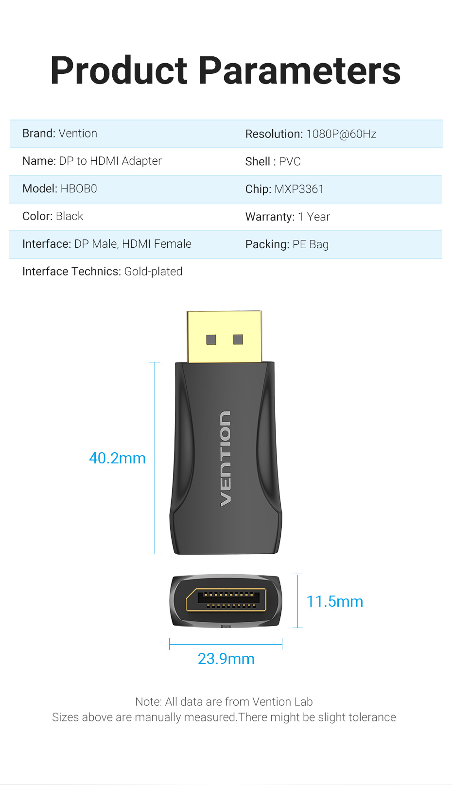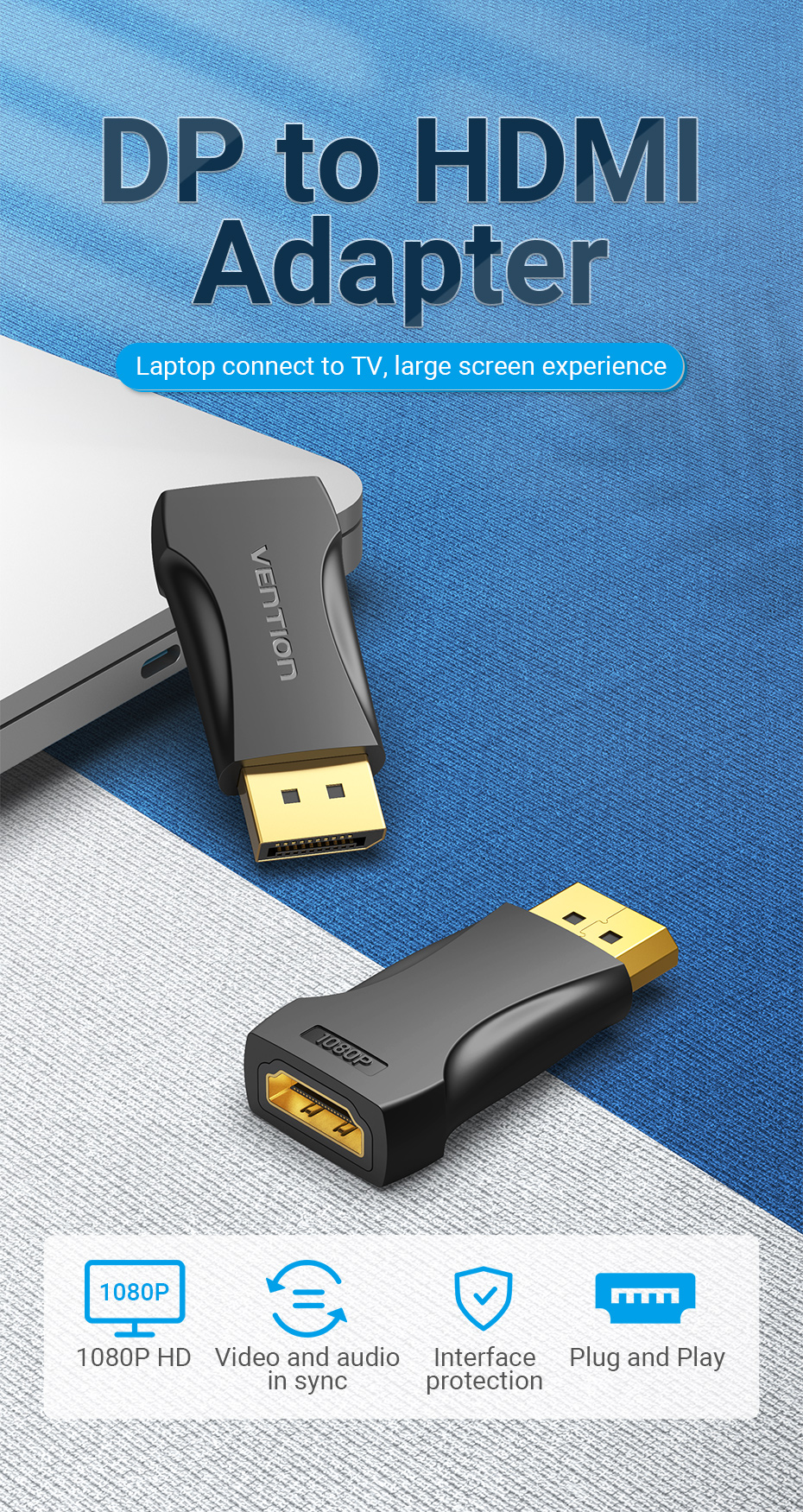Bộ Chuyển Đổi Vention DP Sang HDMI 1080P 60Hz Cho Máy Tính Xách Tay HDTV Từ Đầu Cắm Sang Lỗ Cắm HDMI Mạ Vàng