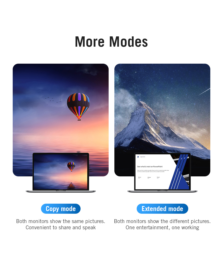 Hỗ trợ độ phân giải truyền lên tới 1920 x 1080 (Full HD 1080P), bao gồm 720P và 1600×1200 cho máy chiếu hoặc màn hình HD. Cung cấp cho bạn tận hưởng hình ảnh và âm thanh cực kỳ rõ ràng và tuyệt đẹp. Lưu ý: Cần có cáp VGA bổ sung (được bán riêng).
