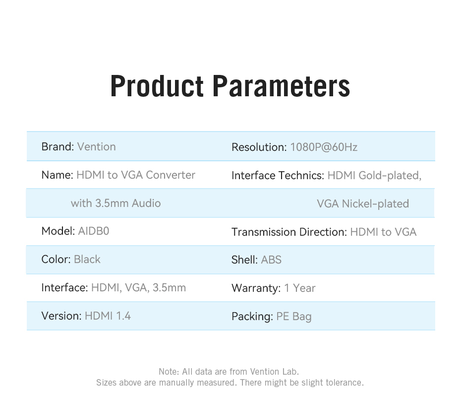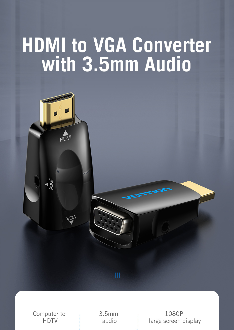 Bộ Chuyển Đổi VGA Vention HDMI Sang VGA Mạ Vàng 1080P Cho PC TV Xbox Máy Chiếu