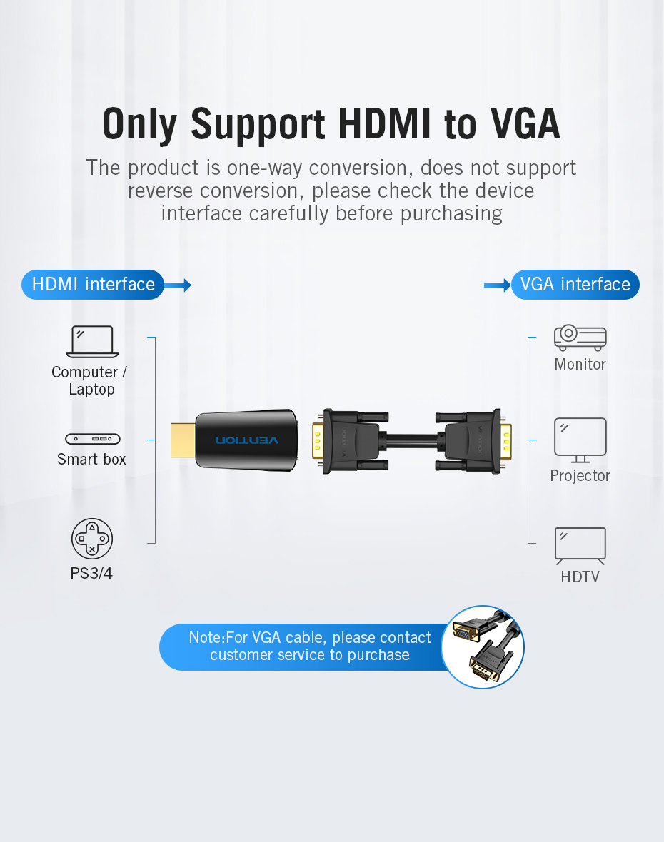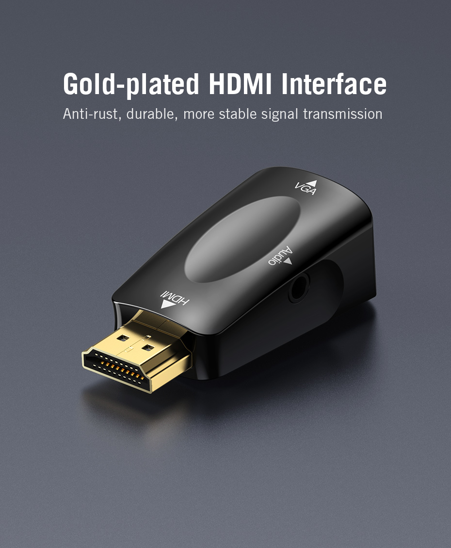 Tích hợp chip IC hoạt động tiên tiến, chuyển đổi tín hiệu kỹ thuật số HDMI thành tín hiệu analog VGA. Lưu ý: chỉ chuyển đổi HDMI sang VGA.