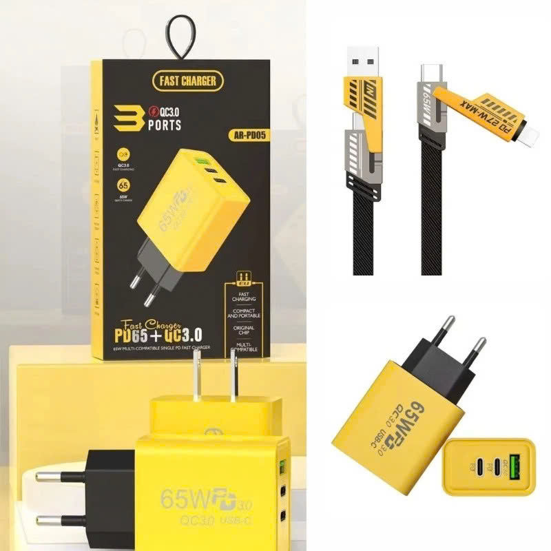 Bộ củ sạc 65W Kèm dây Cáp Sạc 4in1 đa năng – Sạc siêu nhanh sạc được cho nhiều loại thiết bị – máy pda
