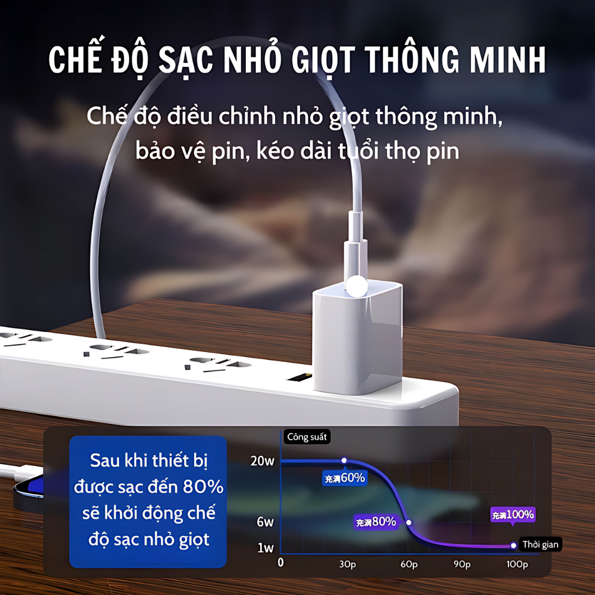 - Hiệu Suất Sạc Nhanh 20W: Với công suất sạc nhanh lên đến 20W, sản phẩm đảm bảo thiết bị của bạn sẽ được sạc đầy nhanh chóng.