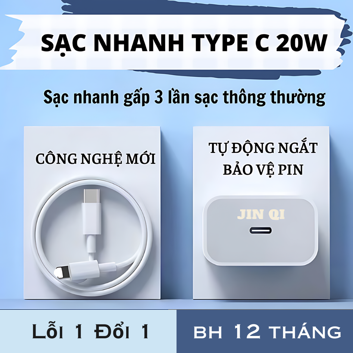 Bộ Củ Sạc Nhanh Cho Iphone Công Suất 20W Cổng Type C