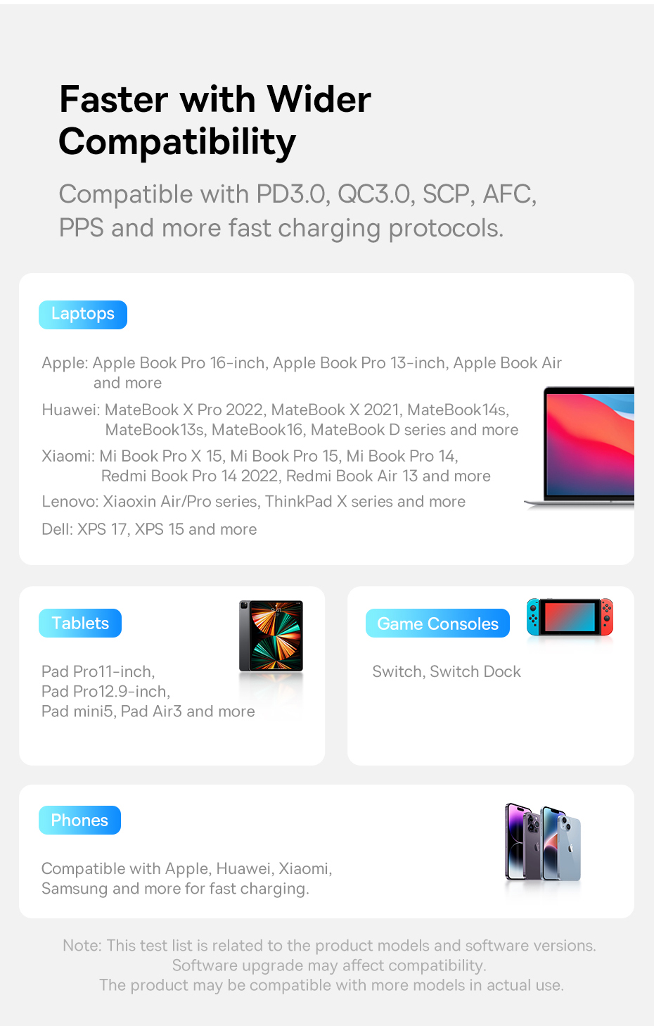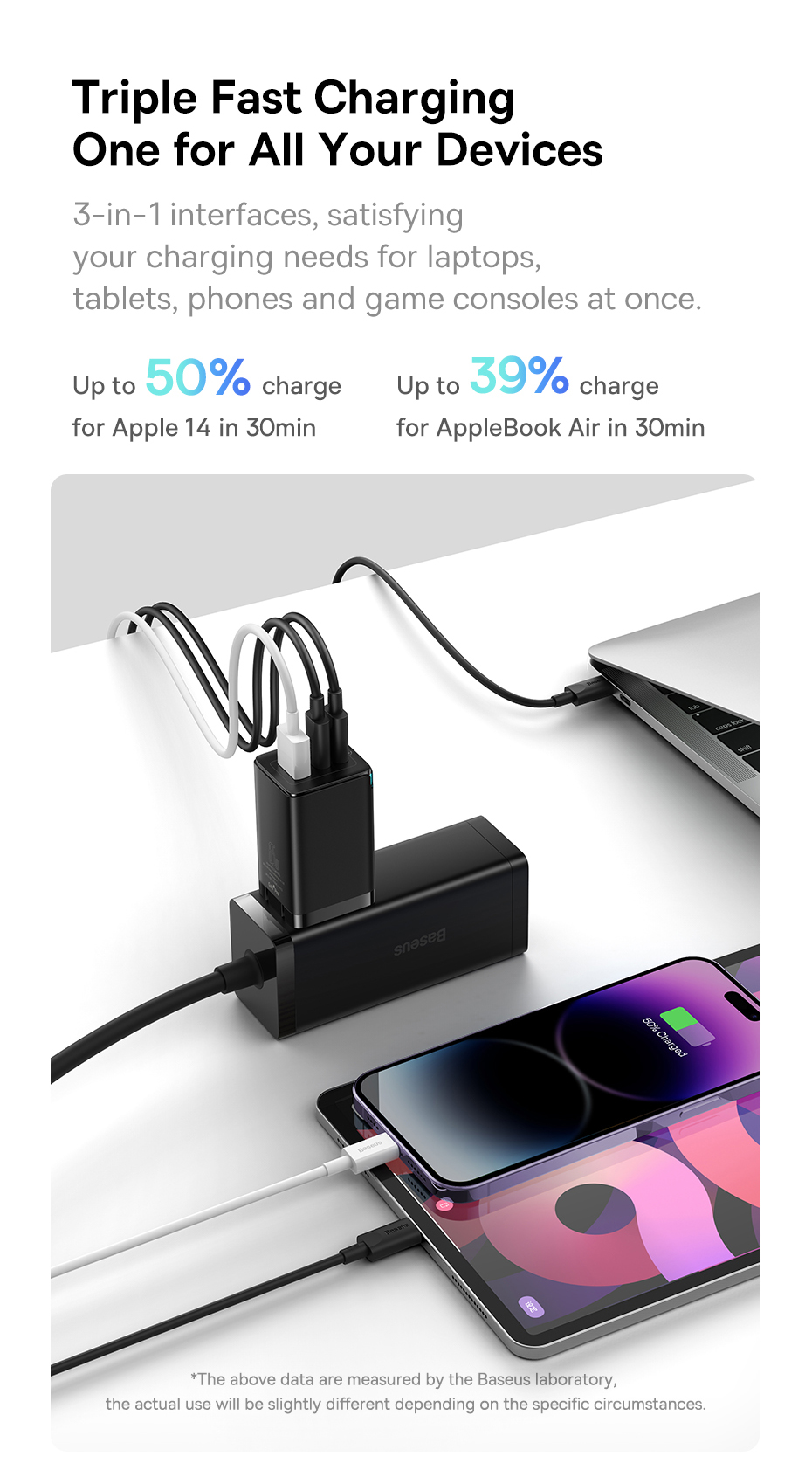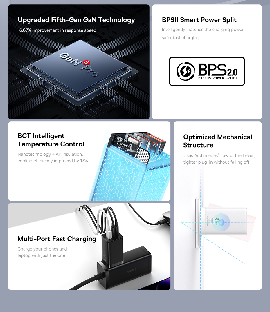 Bộ sạc nhanh Baseus GaN3 Pro 65W 2C+U QC4+ PD3.0 AFC cho máy tính xách tay13 Huawei P40
