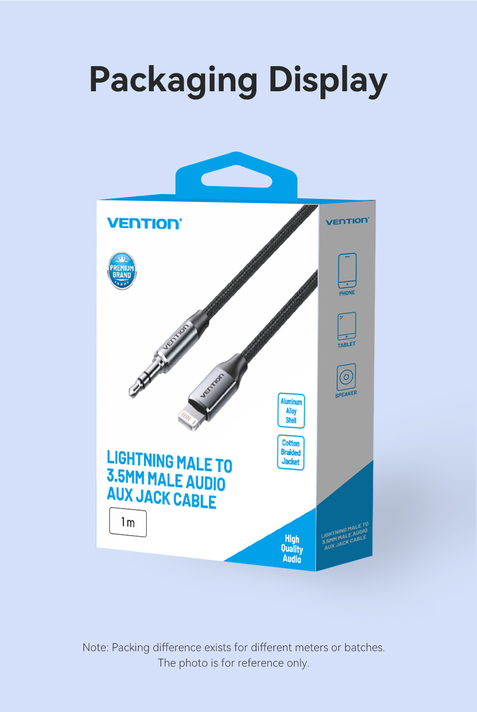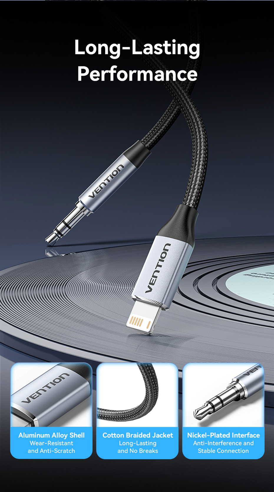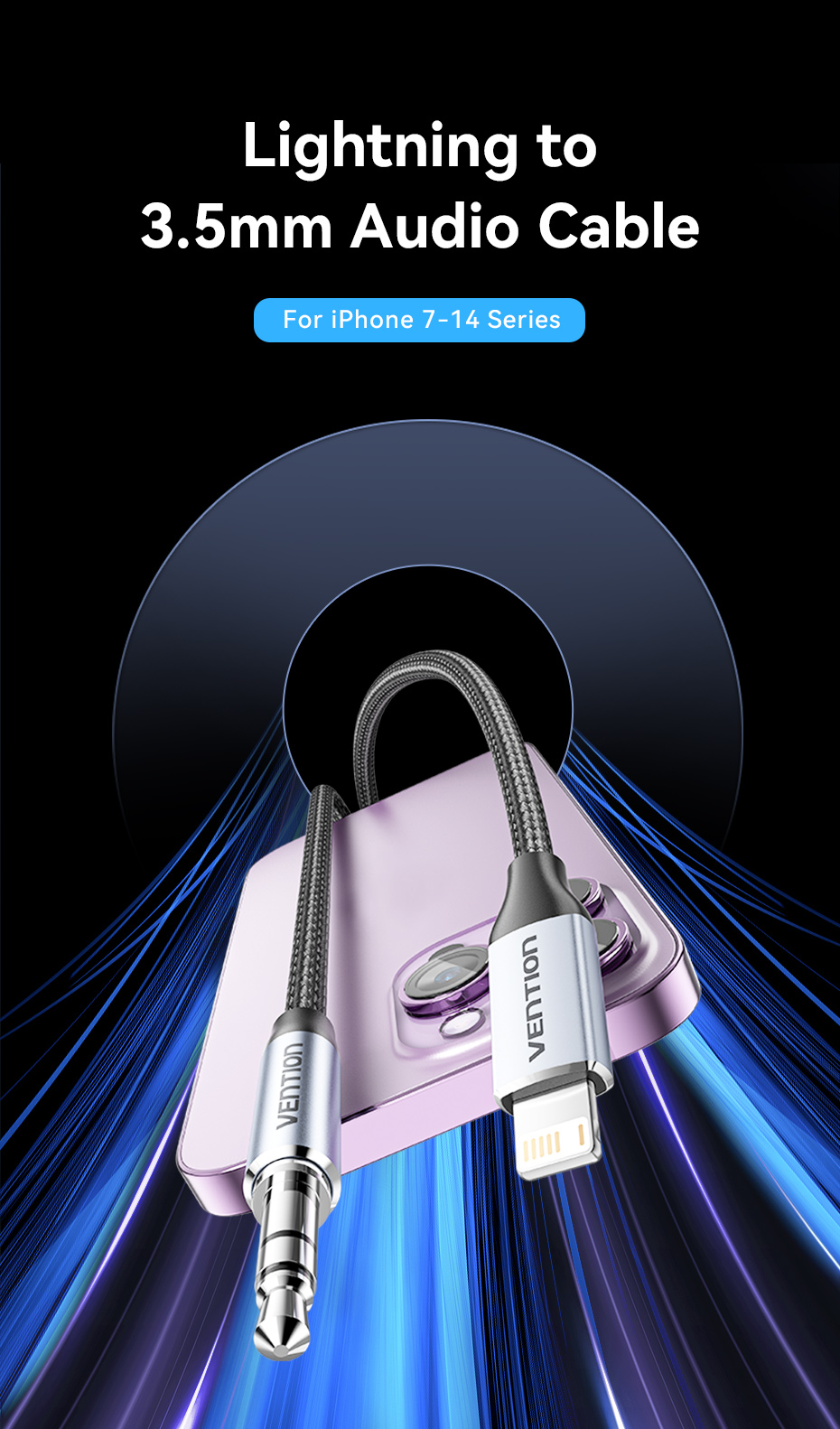 Cáp AUX Tai Nghe Vention Lightning to 3.5mm Cáp Chuyển Đổi âm Thanh Tương Thích Lighting Sang 3,5 mm Cho iPhone 7 – 14 Series