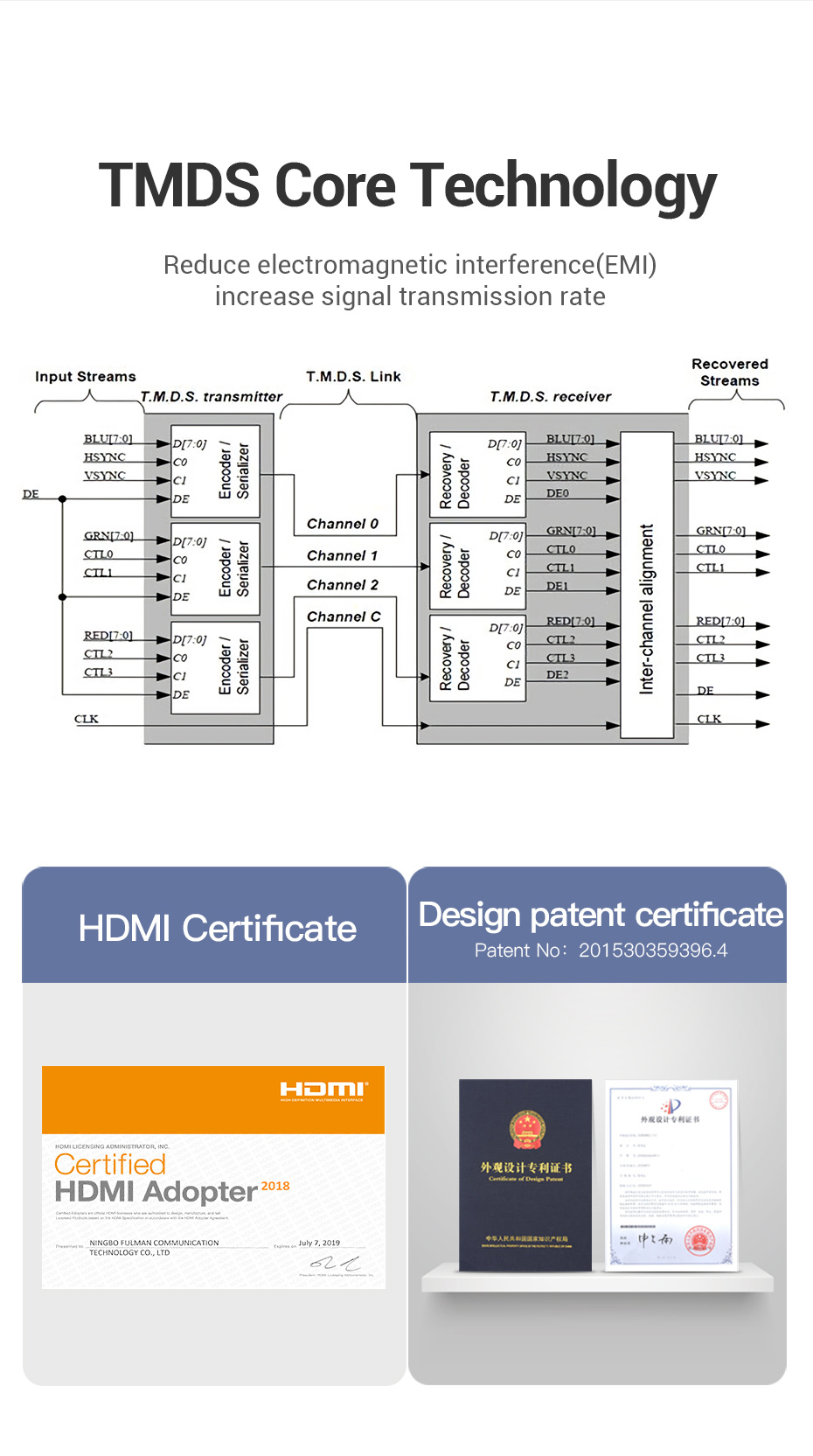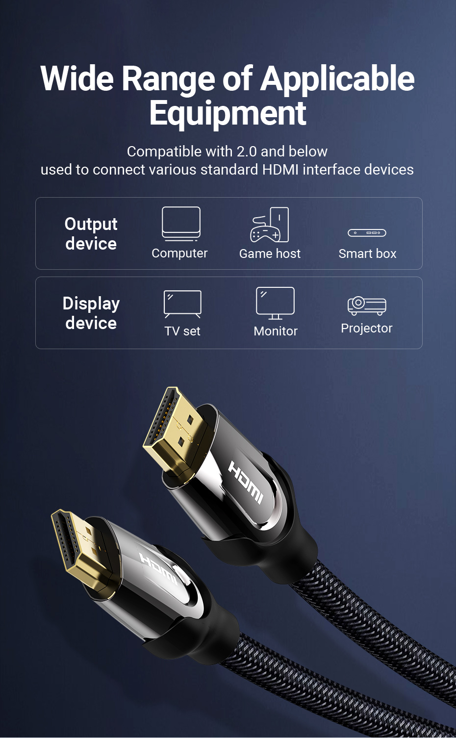 Tương thích với tất cả các thiết bị có giao diện HDMI tiêu chuẩn, chẳng hạn như Apple TV, HDTV, đầu Blu-Ray, DVD, PS3, PS4, XBOX, Macbook Air, máy tính xách tay, màn hình, máy chiếu, v.v. Tương thích ngược với các tiêu chuẩn HDMI trước đây như HDMI 1.4 & HDMI 1.3.