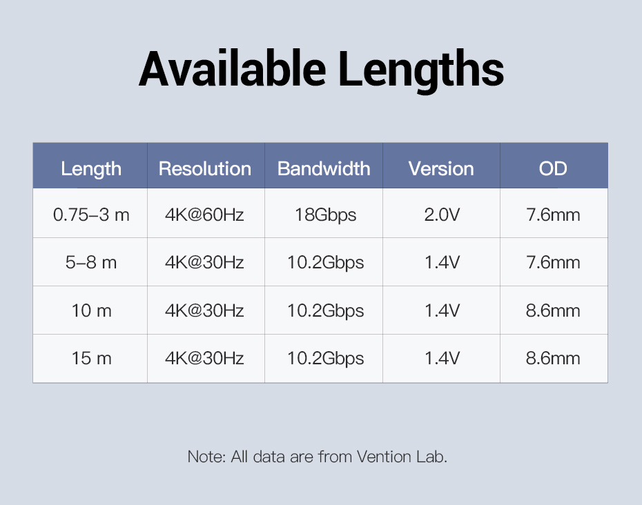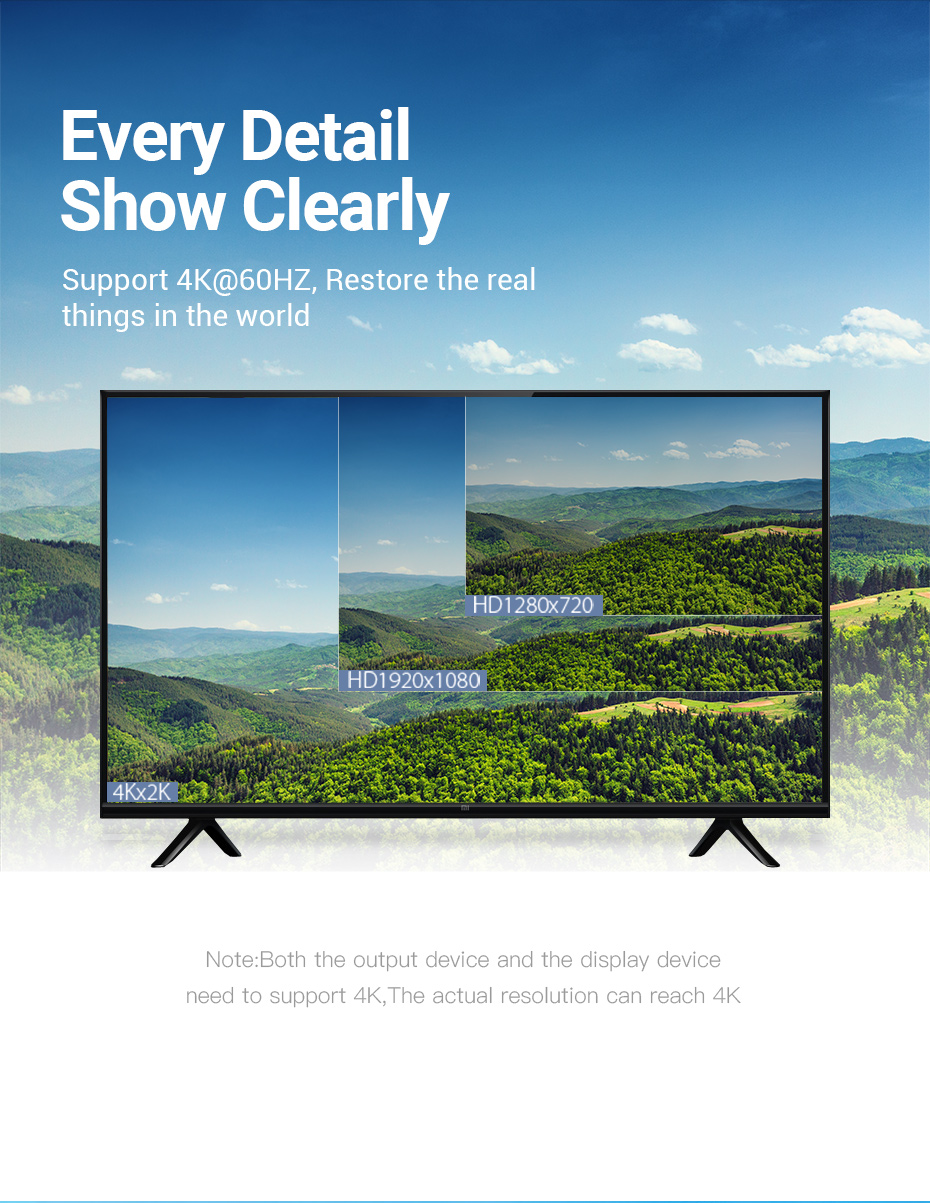Cáp HDMI 2.0 hỗ trợ độ phân giải lên tới 4Kx2K UHD bao gồm 3840×2160, 2560×1600, 2560×1440, 1920×1200 và 1080p.