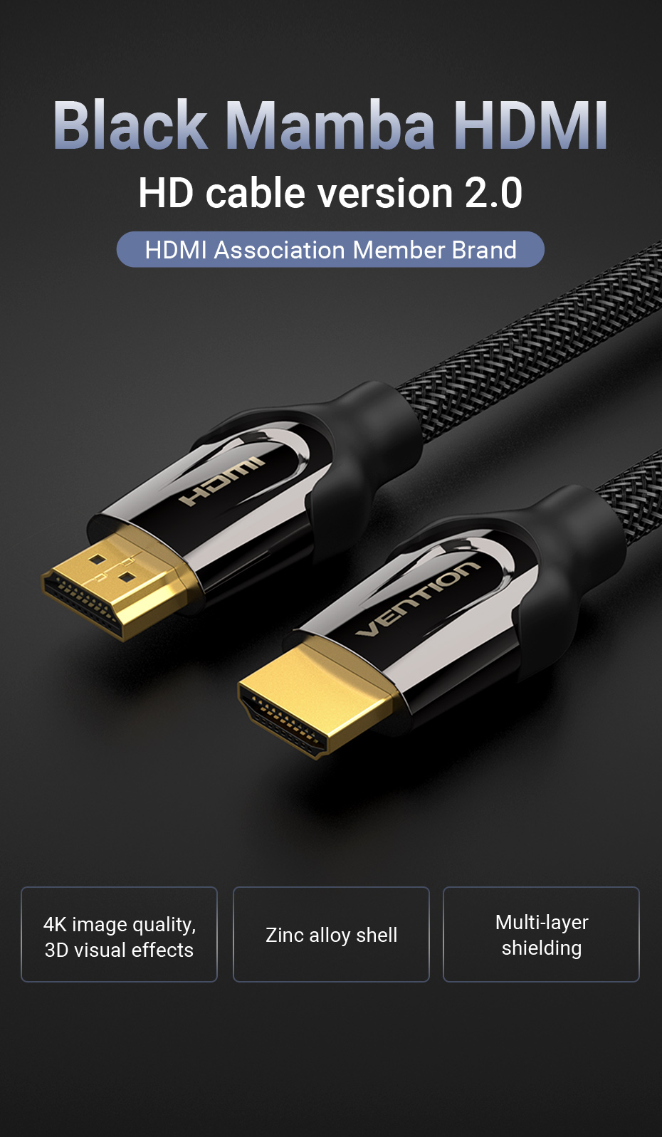 Cáp HDMI 2.0 Vention 4k 3DHZ tiện dụng cho màn hình LCD/ laptop/ máy chiếu/ máy tính