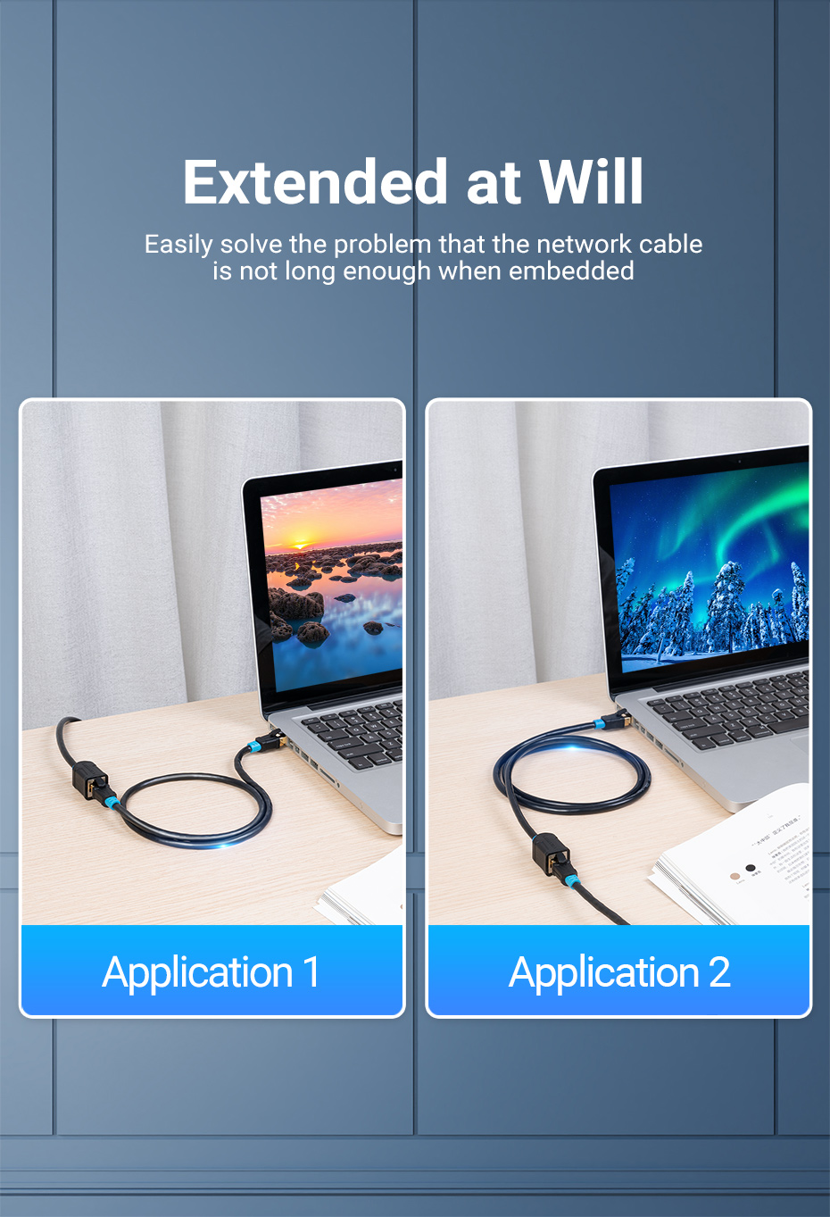 Cáp mạng Nối Dài Vention RJ45 Cat6 Chuyển Đổi Đầu Cắm Sang Ổ Cắm Cho Router PoE Hub DSL