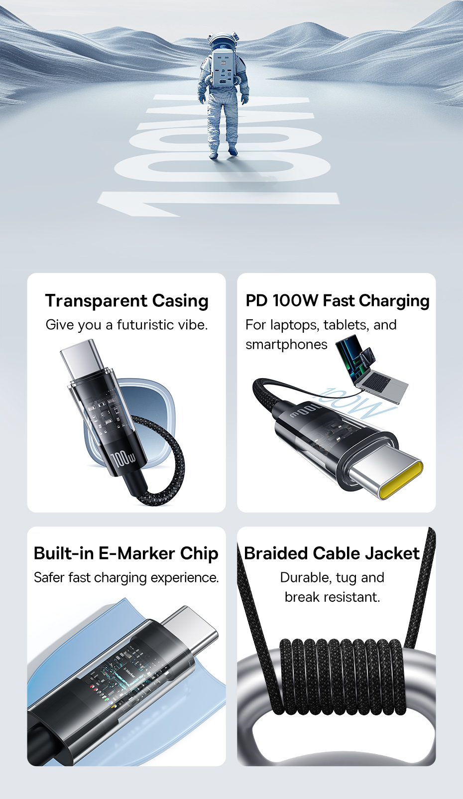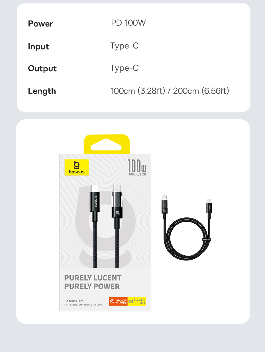 Cáp sạc Baseus Gem USB-C sang USB-C PD 100W Cáp dữ liệu sạc nhanh Thiết kế trong suốt