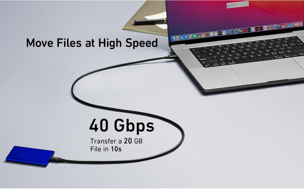 Với tốc độ truyền dữ liệu tối đa lên đến 40 Gbps, bạn sẽ không phải lãng phí thời gian do tệp truyền chậm, giúp bạn di chuyển phim, nhạc và các tập tin lớn giữa các thiết bị ở tốc độ cao.