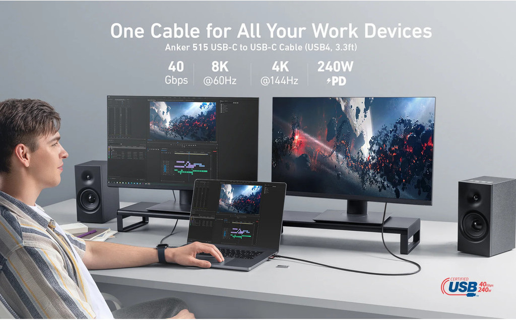 Cáp sạc nhanh Anker 515 USB-C to USB-C 240W + xuất ảnh 8K60HZ HD Display 40 Gbps – Dài 1m – A8487