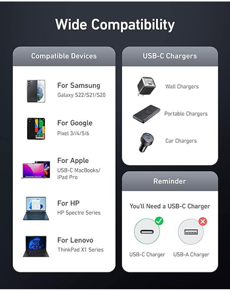 ⚡ Cáp Anker này không giống bất kỳ loại cáp nào khác mà bạn từng sở hữu. Dày nhưng linh hoạt hơn bao giờ hết. Mang lại cảm giác rất “mềm” với lớp hoàn thiện bằng nylon. Hầu như không có bộ nhớ cáp; nó sẽ treo gần như thẳng hoàn toàn khi được treo ở một đầu.