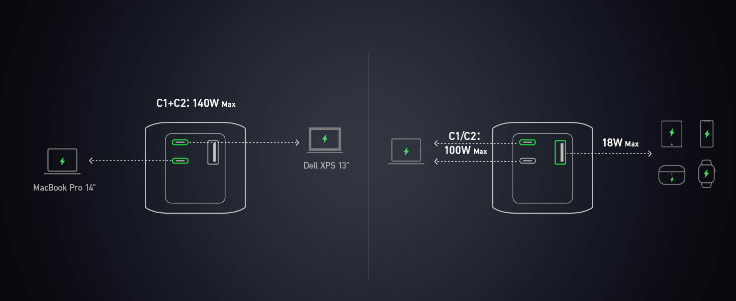USB-C-1 + USB-C-2 122W & USB-A 18W