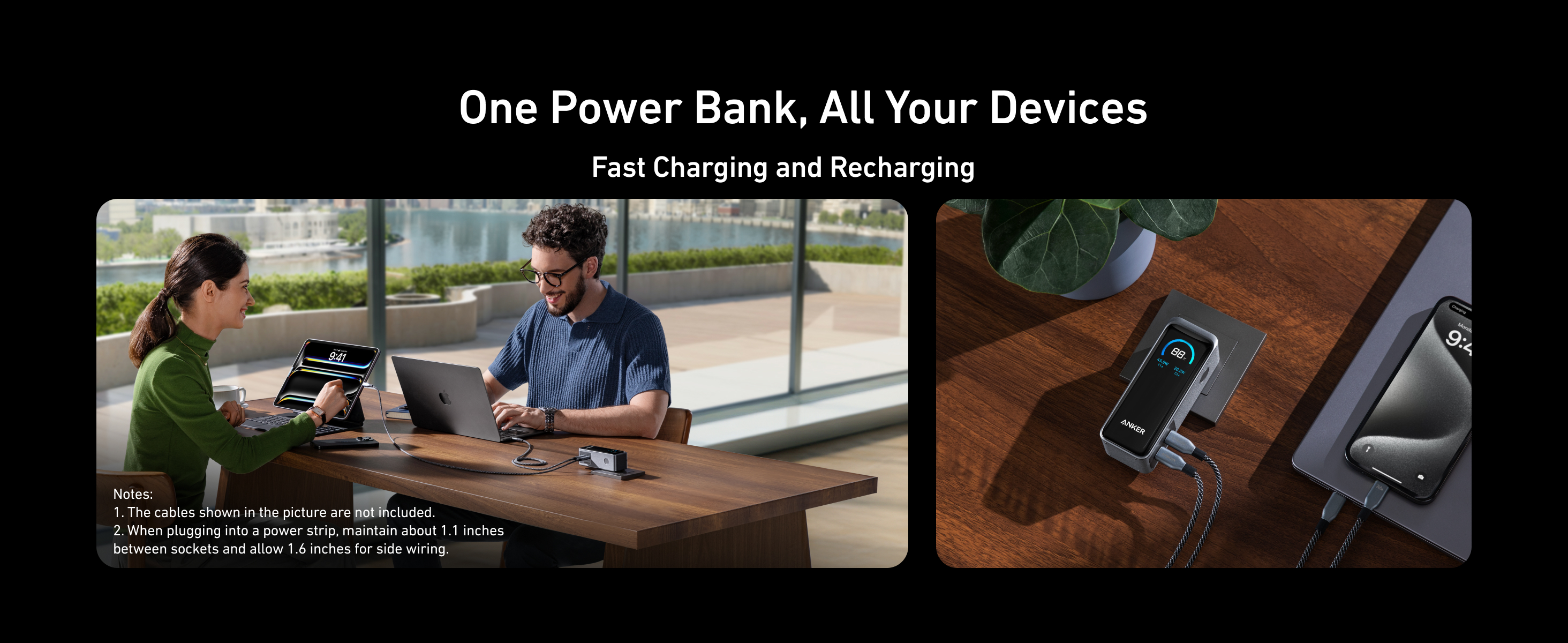 – Thiết kế nhỏ gọn thích hợp mang theo: Chỉ nặng 305g, có thể dễ dàng bỏ vào bất kỳ túi quần hay túi xách, cung cấp năng lượng đáng kể mà không cồng kềnh. Nhỏ hơn khoảng 60% so với pin di động đầu ra 65W thông thường.