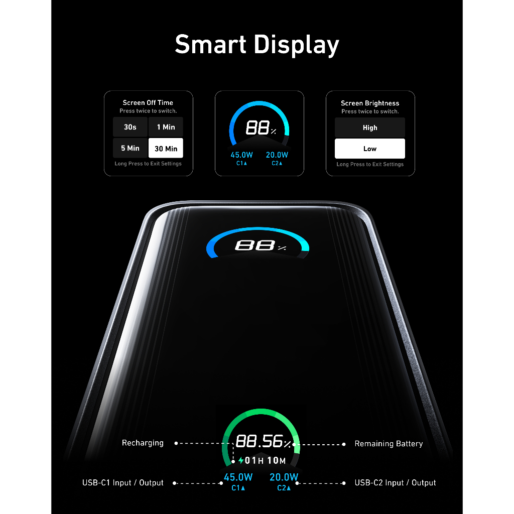 – Thiết kế nhỏ gọn thích hợp mang theo: Chỉ nặng 305g, có thể dễ dàng bỏ vào bất kỳ túi quần hay túi xách, cung cấp năng lượng đáng kể mà không cồng kềnh. Nhỏ hơn khoảng 60% so với pin di động đầu ra 65W thông thường.