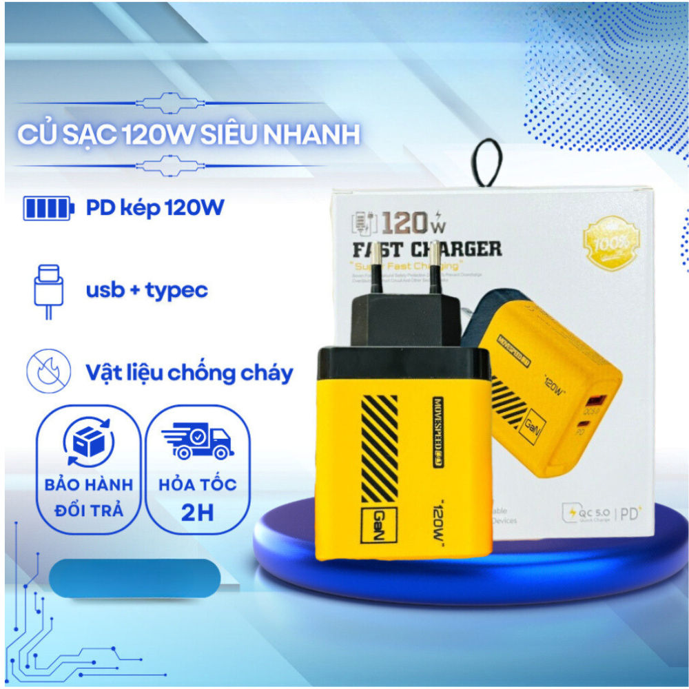 Củ Sạc Siêu Nhanh 120W PD USB Type-C – Bộ Chuyển Đổi Nguồn 5.0