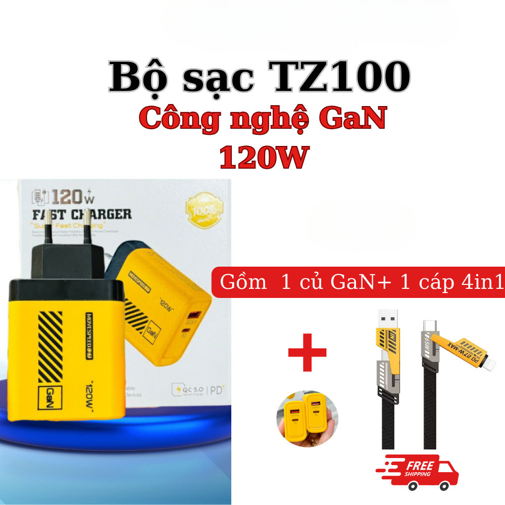 Củ sạc GAN CAO CẤP TZ- 100 120W Củ sạc sử dụng công nghệ GAN cao cấp- Sạc siêu nhanh BH 12 tháng