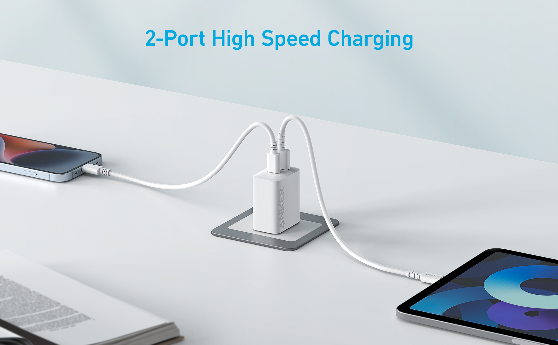 Củ sạc nhanh Anker 20W | 2 cổng 1USB-A & 1USB-C sạc 2 thiết bị cùng lúc | Thích hợp cho iPhone iPad Airpods – A2348