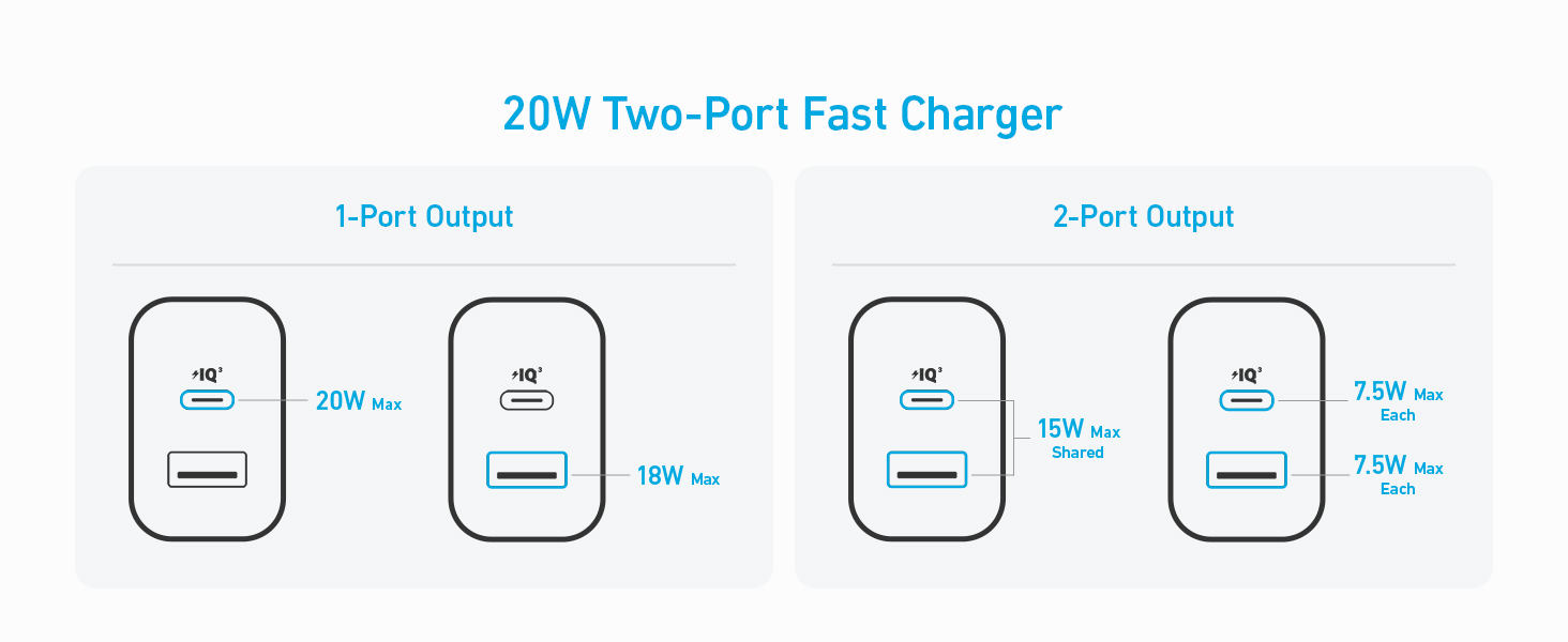 + USB-C: 5V⎓3A / 9V⎓2.22A / 12V⎓1.67A (20W Max)​