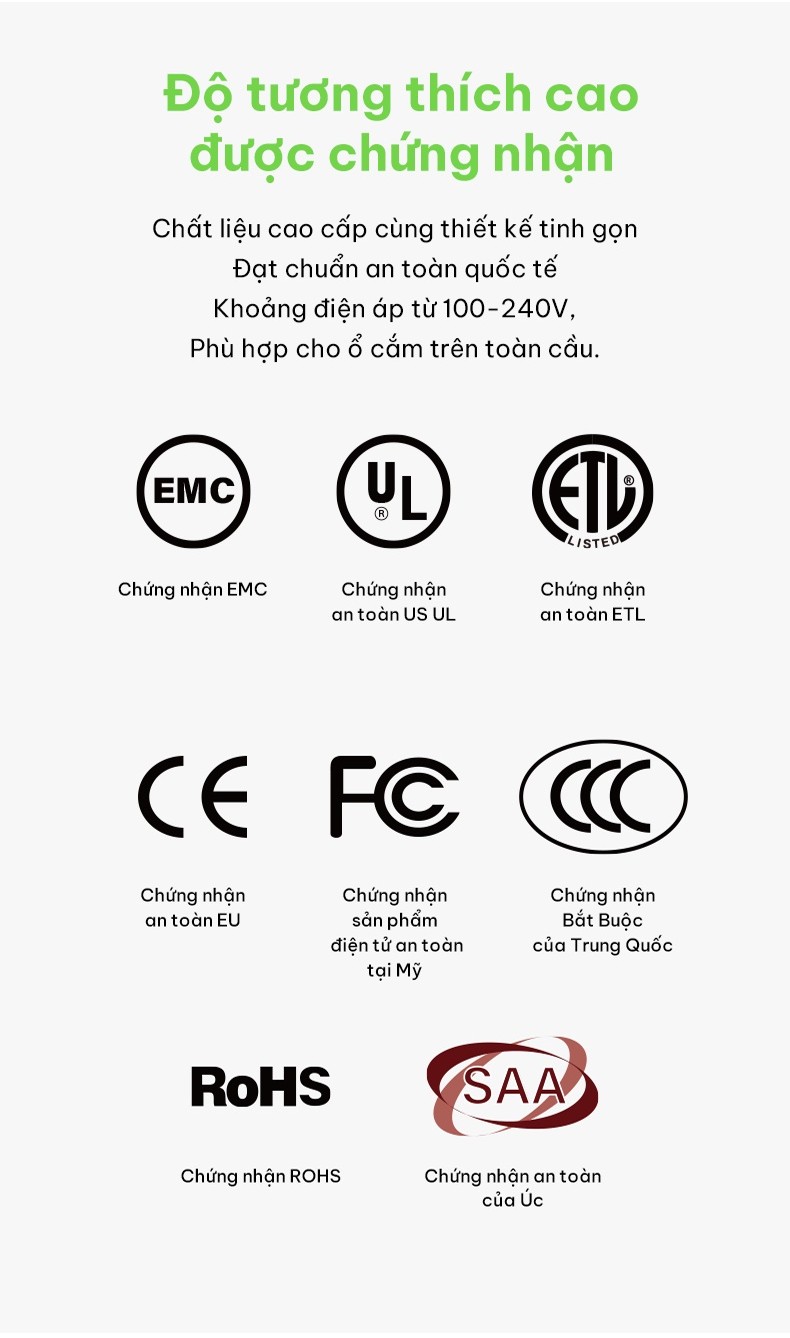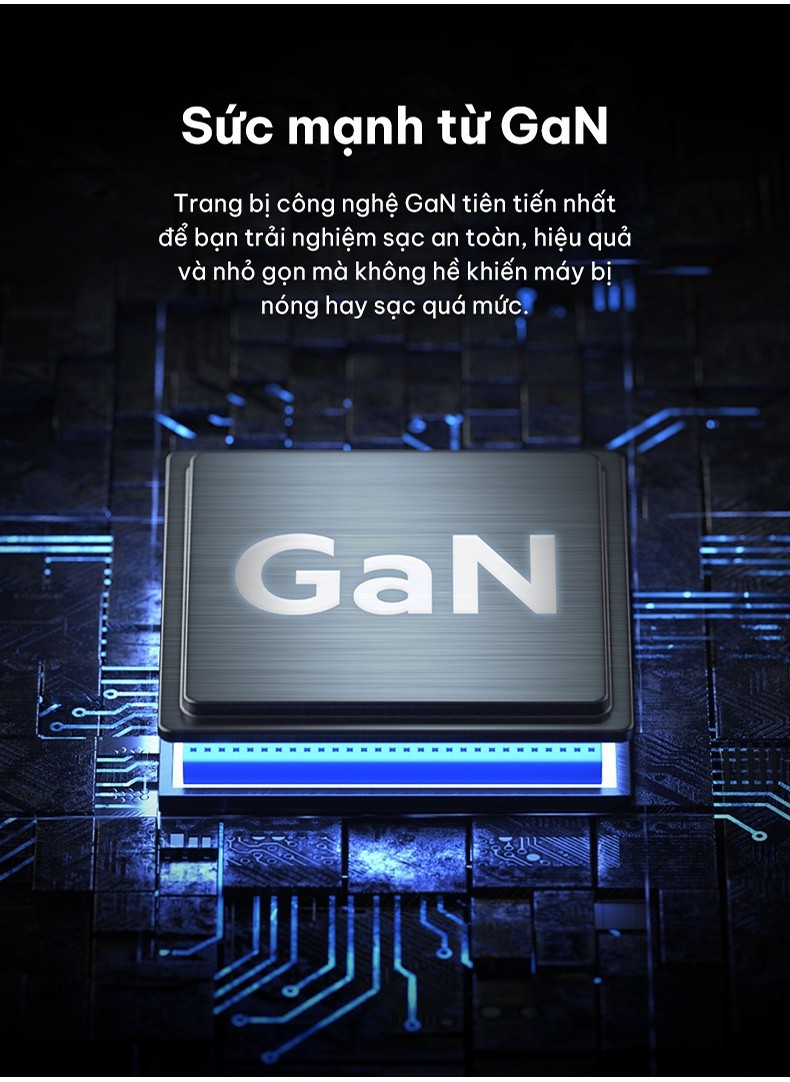 – Công nghệ GaN tiên tiến – Tăng hiệu suất, giảm nhiệt năng, tối ưu không gian và thời gian sạc.