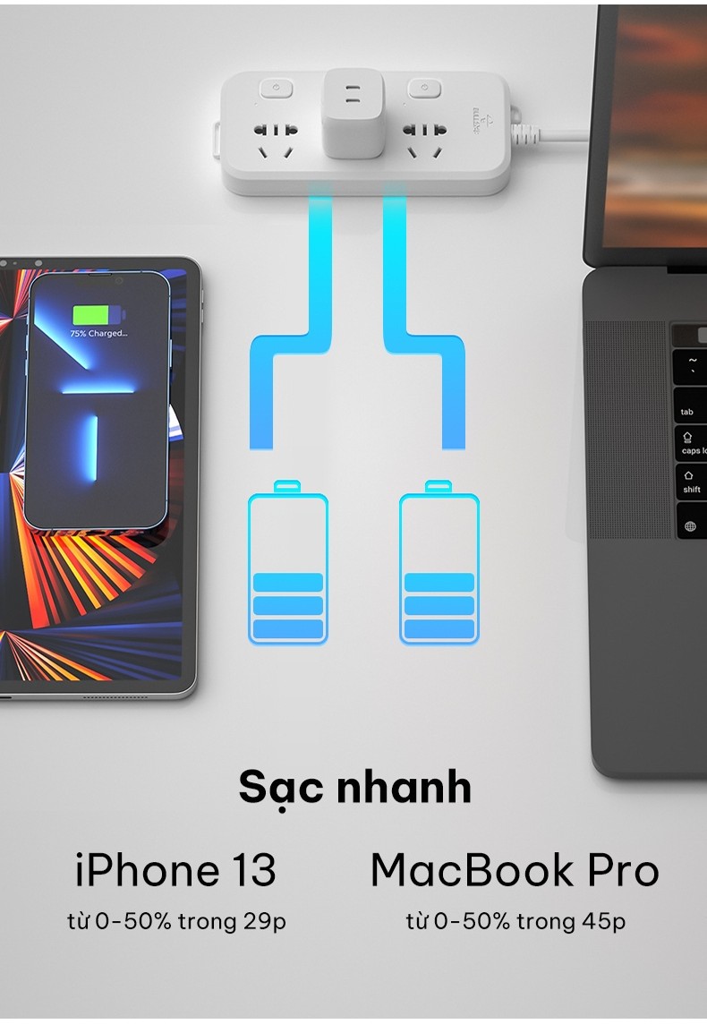 – Công suất lên đến 65W – Sạc nhanh hiệu quả cho MacBook Pro, iPad Pro, iPhone 15, Samsung Galaxy S24, và các thiết bị USB-C hỗ trợ PD/PPS.