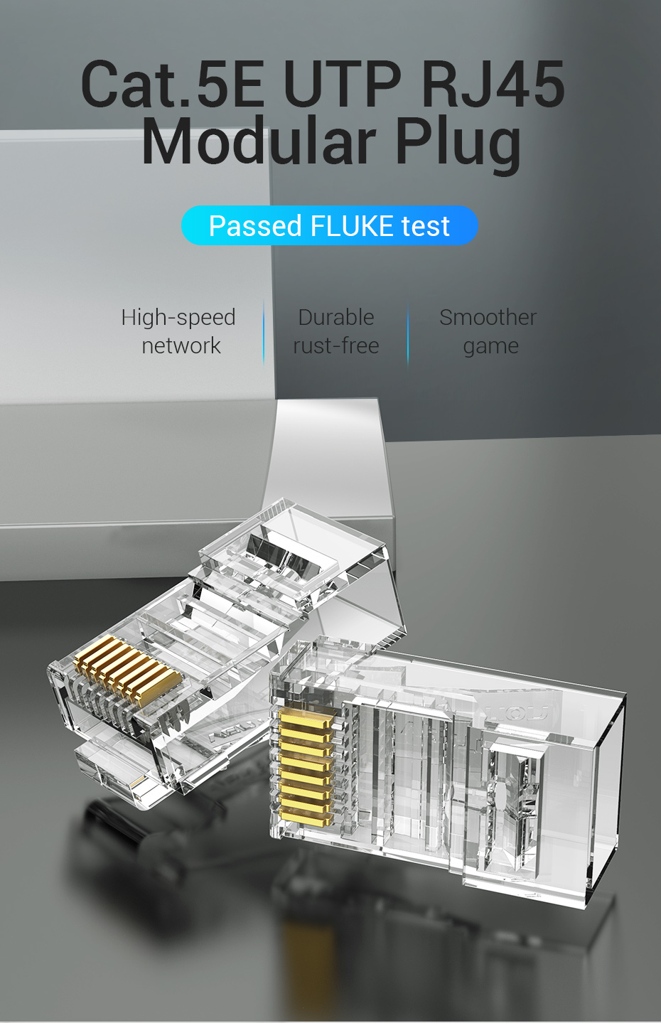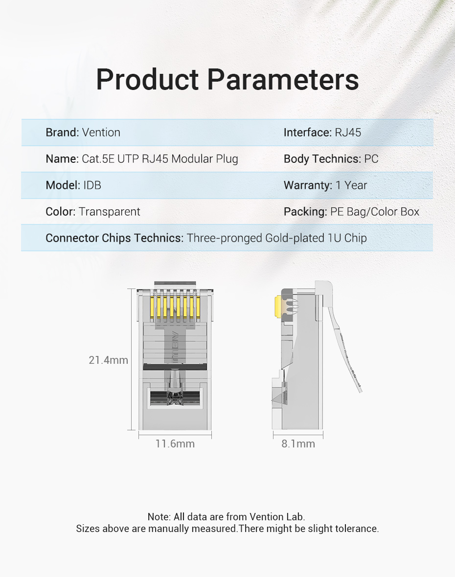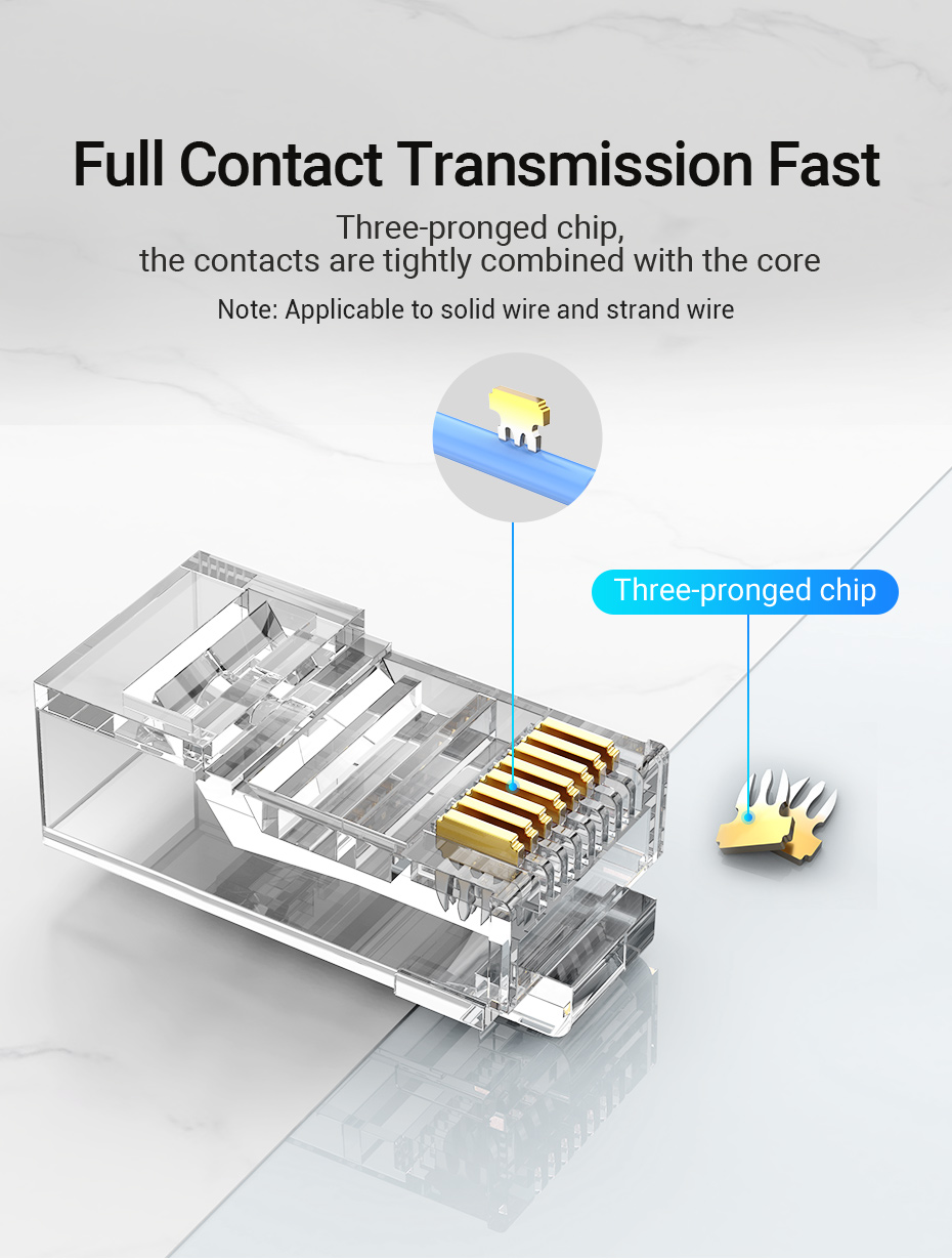 Đầu nối Vention RJ45 Cat6 / Cat5e / Cat5 Cắm mạng 8P8C Cáp Ethernet mô-đun Đầu nối uốn cho dây rắn và cáp tiêu chuẩn trong suốt