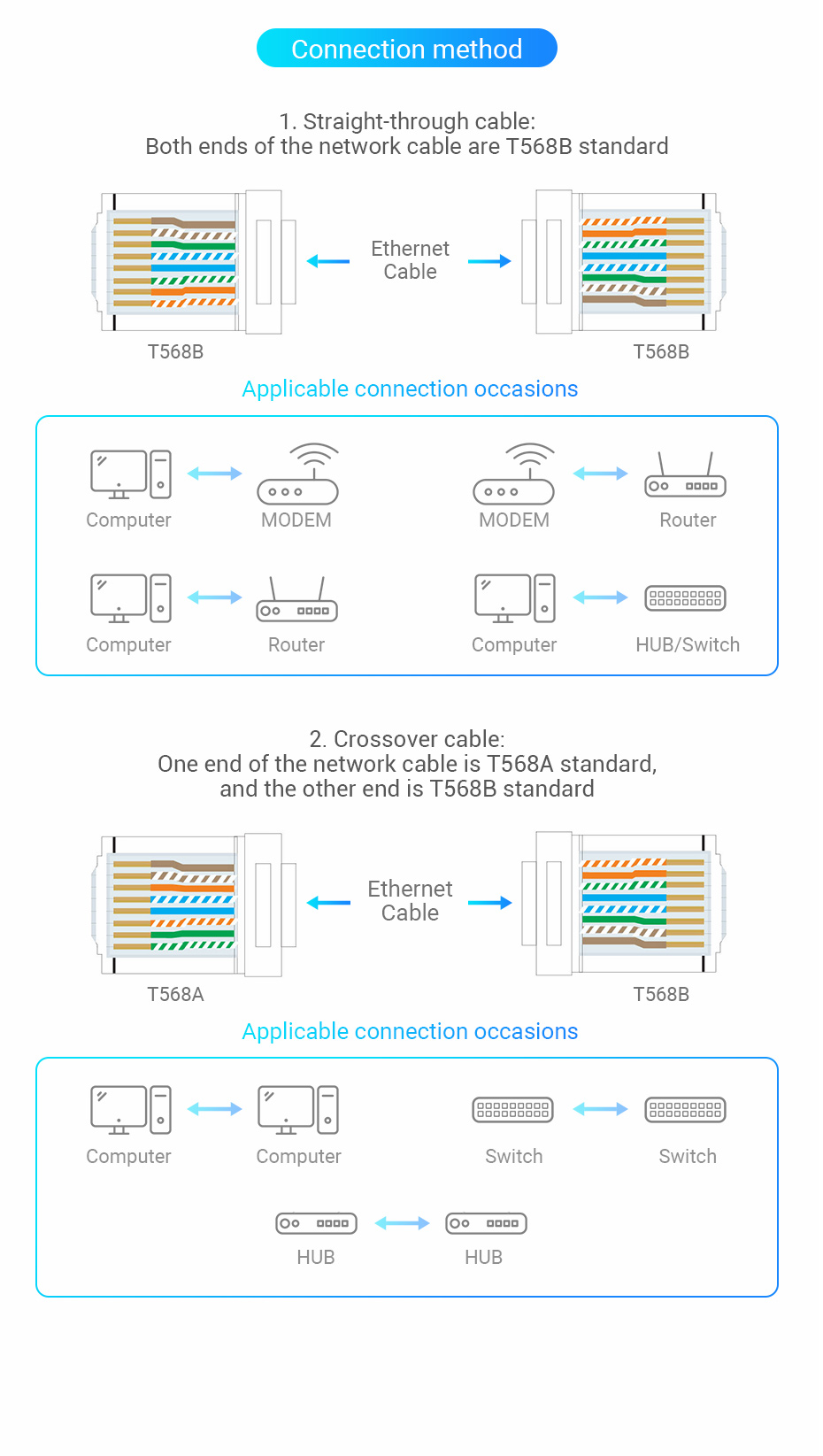 Thích hợp cho cáp Cat6, Cat5e và Cat5.
