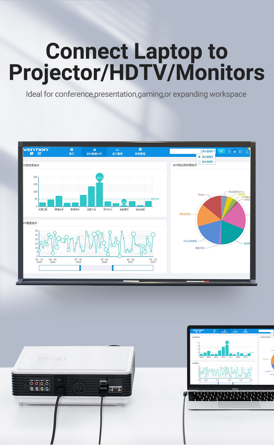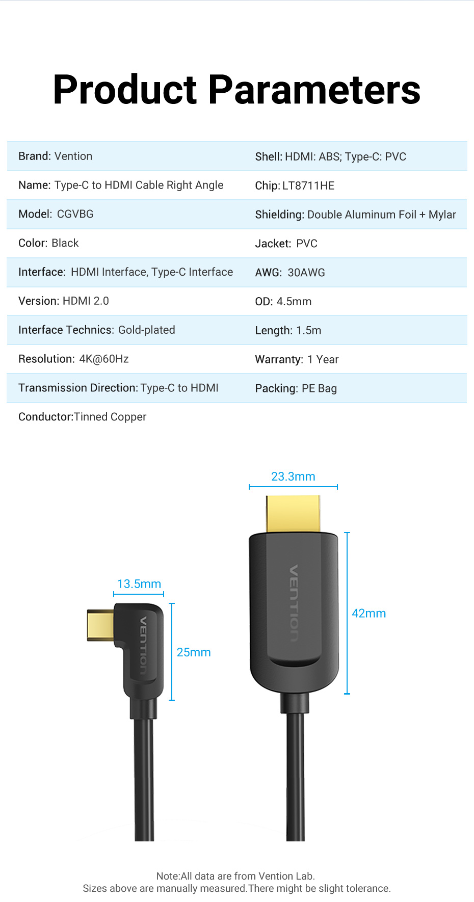 Dây cáp chuyển đổi Vention từ HDMI sang đầu USB C hỗ trợ 3 4K 60Hz cho Huawei MateBook