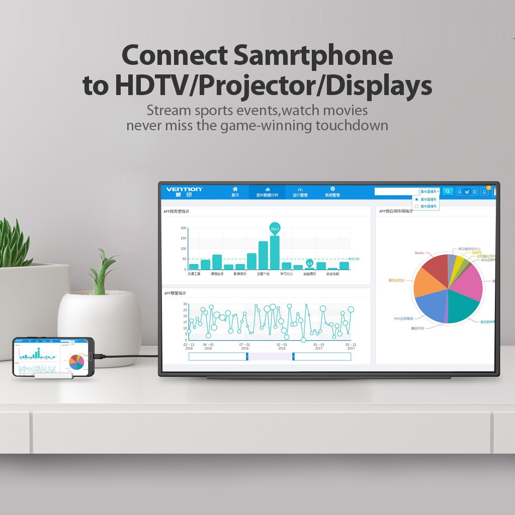 Dây cáp HDMI Vention chất lượng 4K 2K UHD Type-C sang HDMI 3D USB C