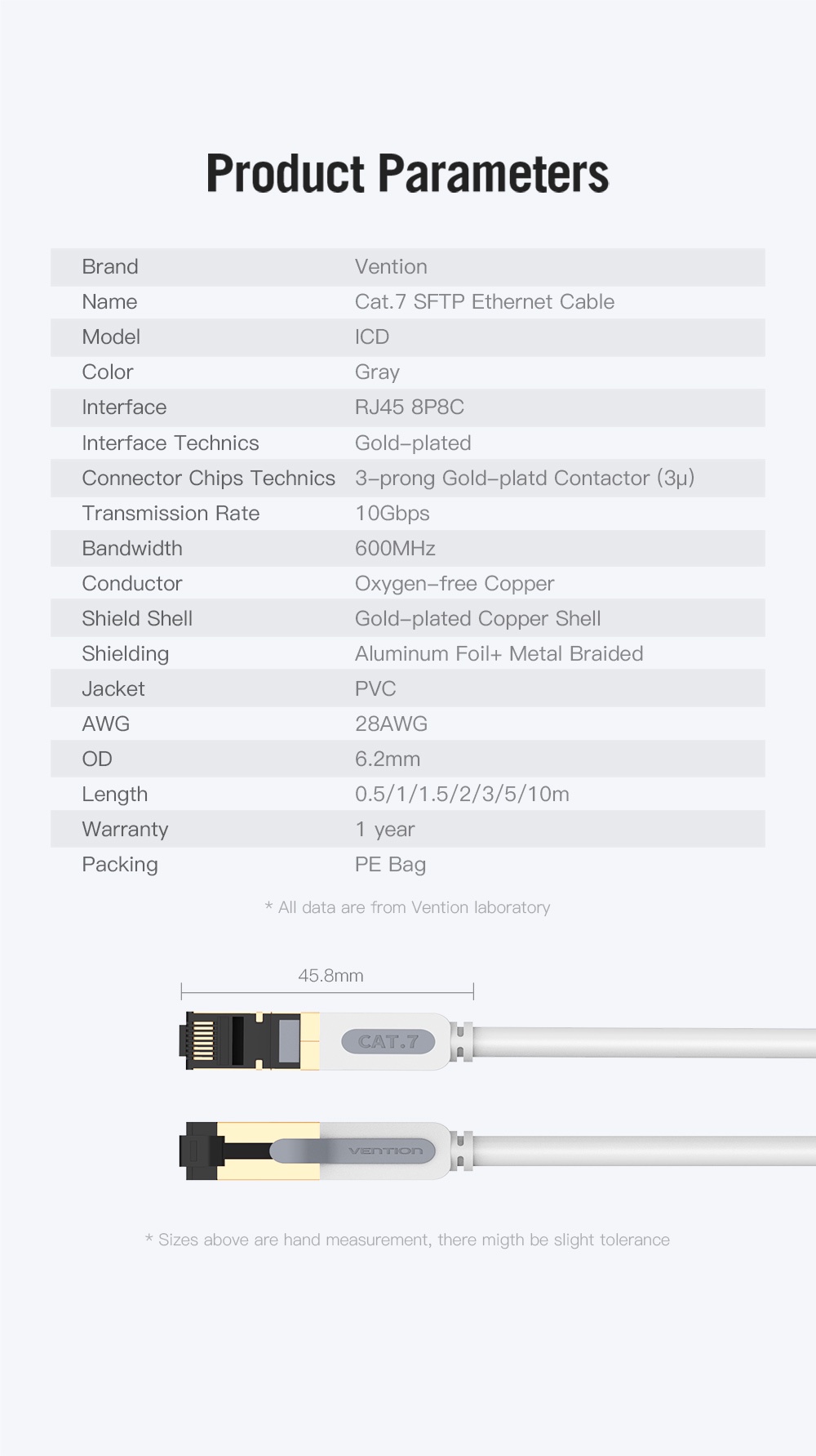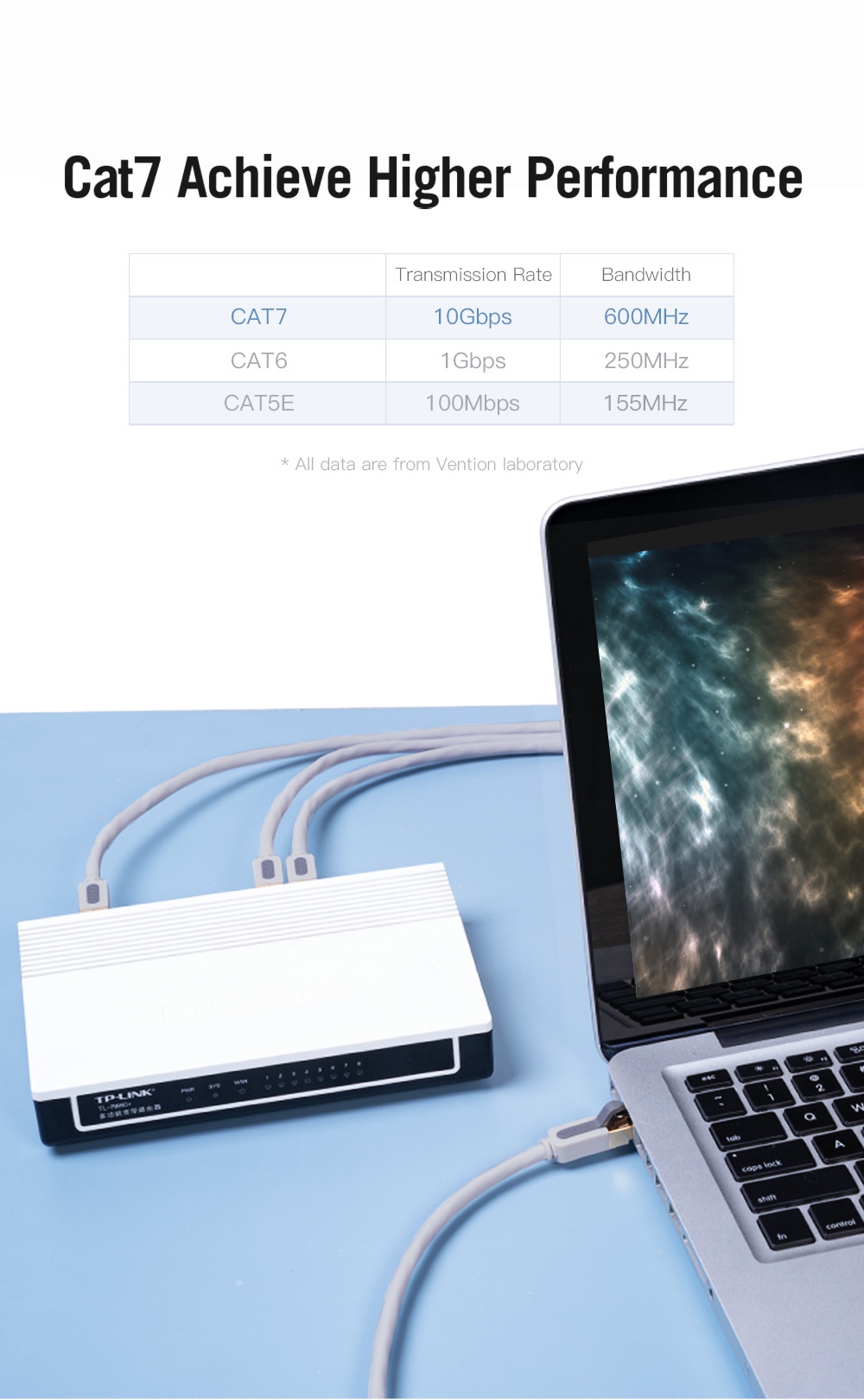 Dây Cáp Mạng Vention CAT7 Tốc Độ Cao 10 Gbps RJ45 SSTP Ethernet Lan Cho PC Laptop Internet TV Xbox