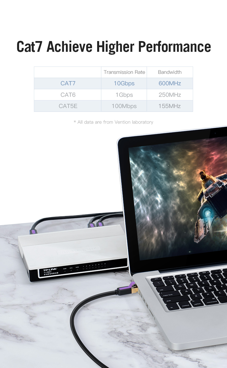 Dây cáp mạng Vention LAN 10Gbps RJ45 SSTP CAT7 tốc độ cao