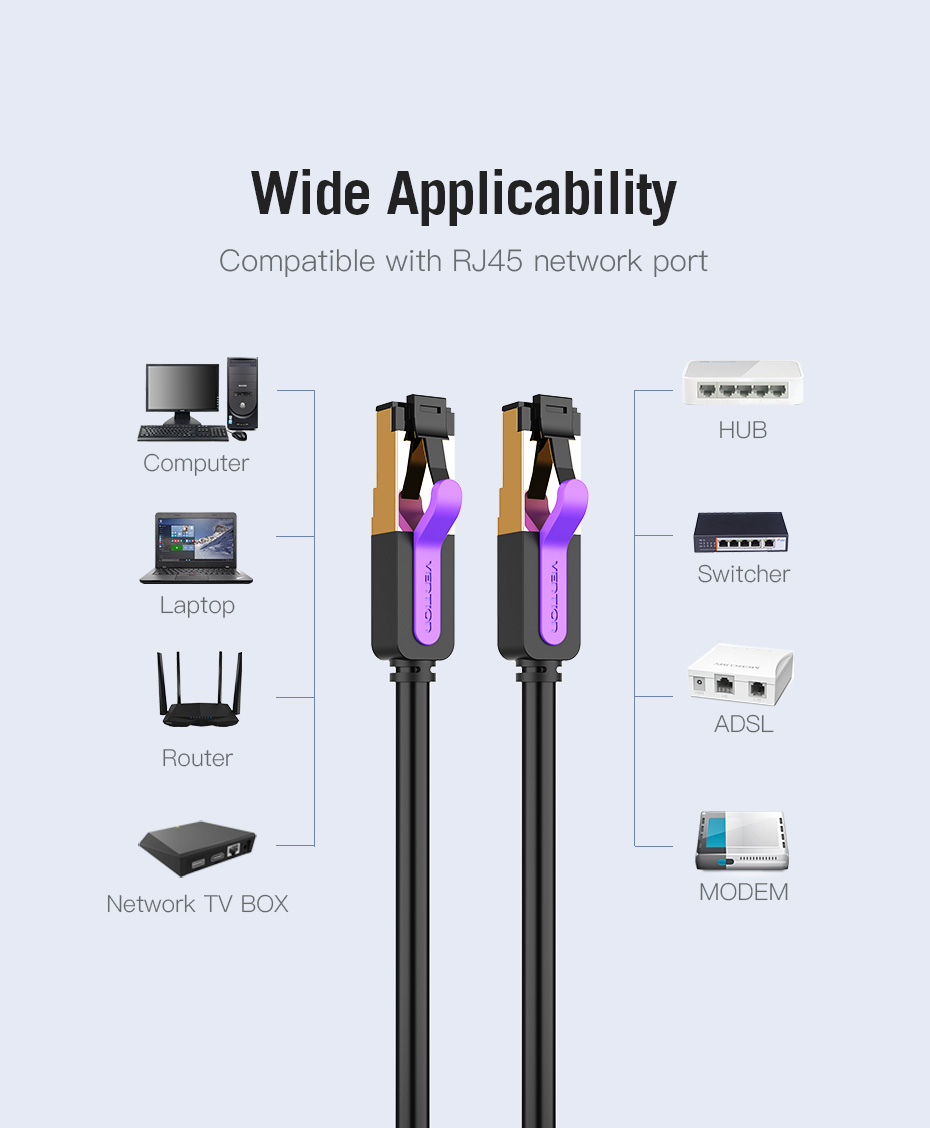 1. Được sử dụng rộng rãi cho các thiết bị có cổng RJ45, chẳng hạn như: Máy tính / Máy tính xách tay / Bộ định tuyến / TV-BOX / HUB / Bộ chuyển đổi / ADSL / Modem / Máy in,…