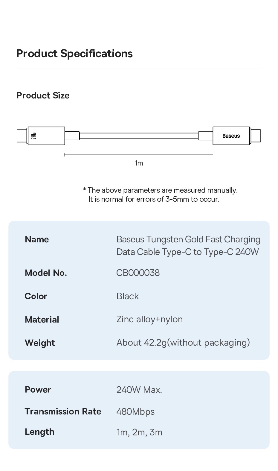 Dây cáp sạc BASEUS usb type C 240W thích hợp cho Phone 15 pd3.1 realme samsung s23 macbook pc