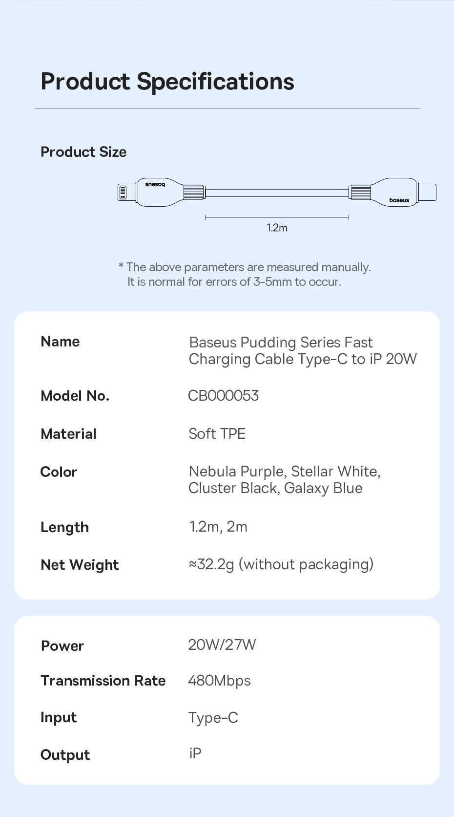 Dây cáp sạc nhanh BASEUS Pudding Series 20W Type-C thích hợp